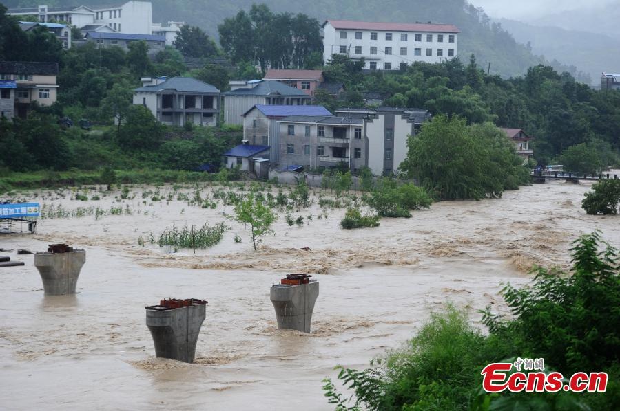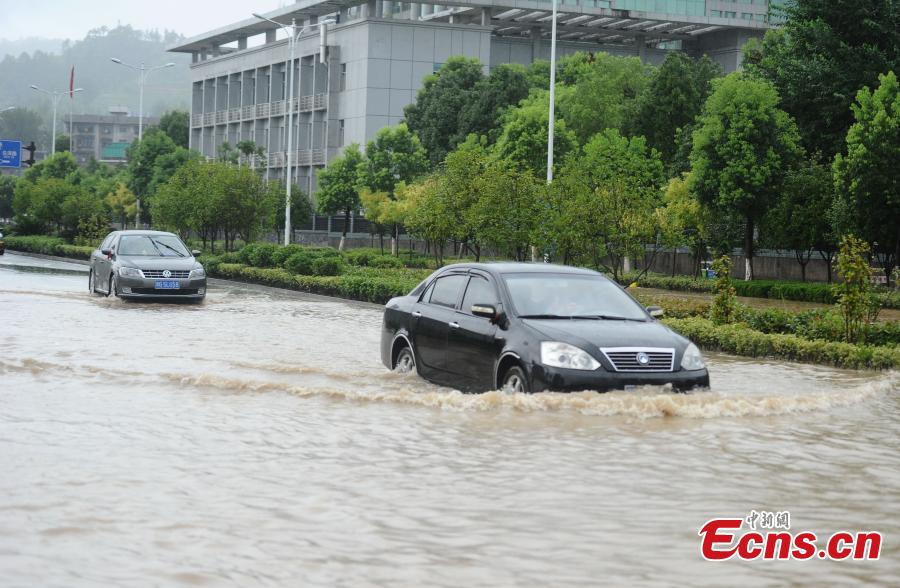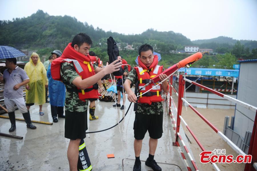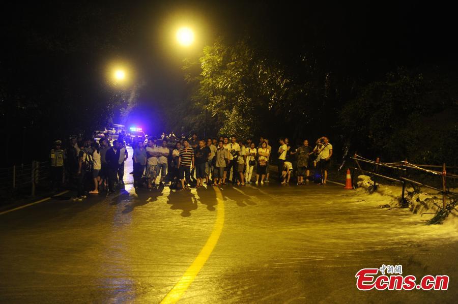 A photographer takes pictures of floodwater on the stairs in front of Tianmen Mountain in Zhangjiajie City, Central China’s Hunan Province, July 18, 2016. Several scenic spots were closed to the public after heavy rain. (Photo: China News Service/Yang Huafeng)