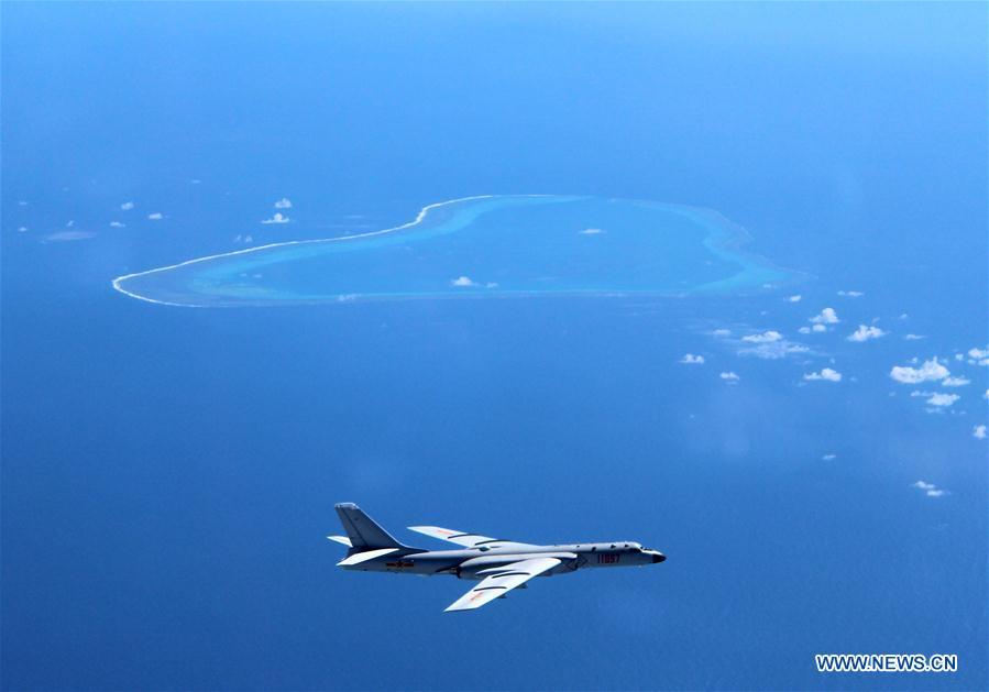 Undated photo shows a Chinese H-6K bomber patrolling islands and reefs including Huangyan Dao in the South China Sea. The People's Liberation Army (PLA) Air Force conducted a combat air patrol in the South China Sea recently, which will become a "regular" practice in the future, said a military spokesperson on July 18, 2016. The PLA sent H-6K bombers and other aircraft including fighters, scouts and tankers to patrol islands and reefs including Huangyan Dao, said Shen Jinke, spokesman for the PLA Air Force. (Xinhua/Liu Rui)