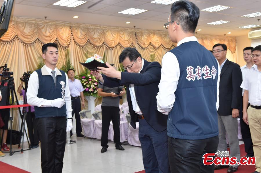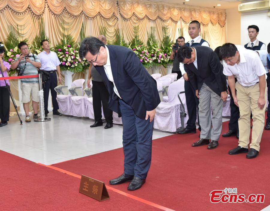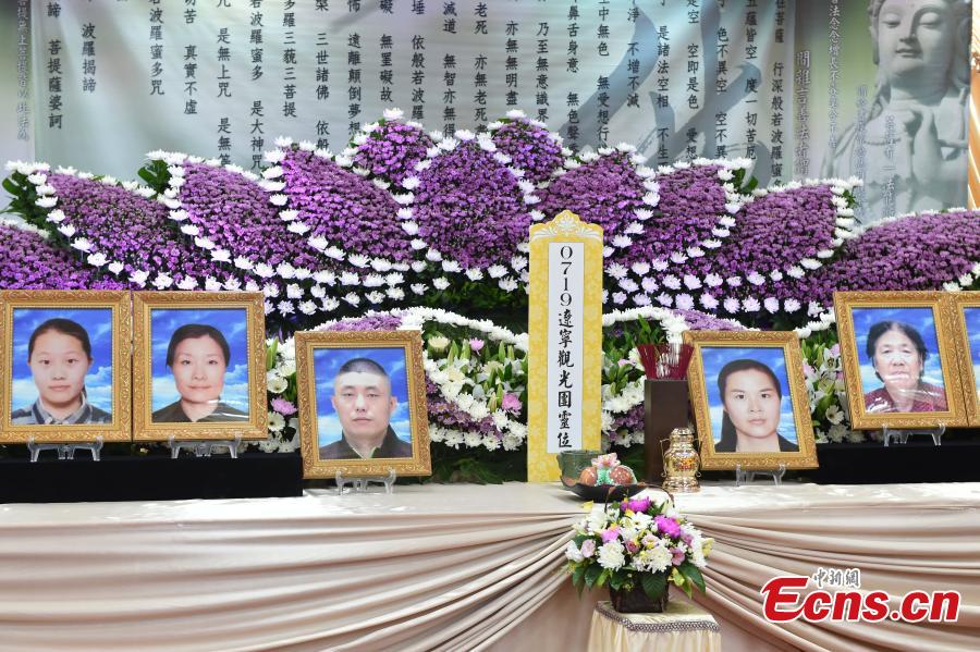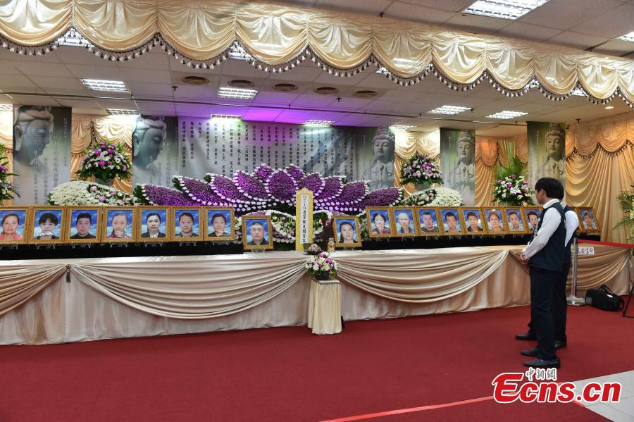The mourning hall for victims of a fatal tour bus accident in Taoyuan City, Taiwan, July 21, 2016. Twenty-six people, including 23 tourists, a tour guide from the Chinese mainland and two locals -- a driver and a tour guide -- were killed when their tour bus crashed into a highway barrier and caught fire near Taoyuan Airport in Taiwan on Tuesday. A group of four mainland officials arrived in Taiwan to assist families of the victims. (Photo: China News Service/Xu Dongdong)