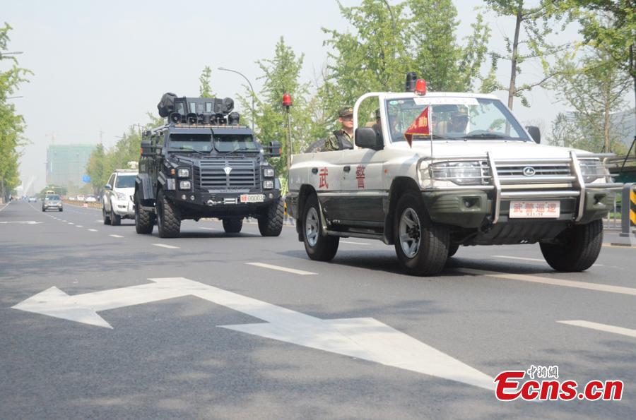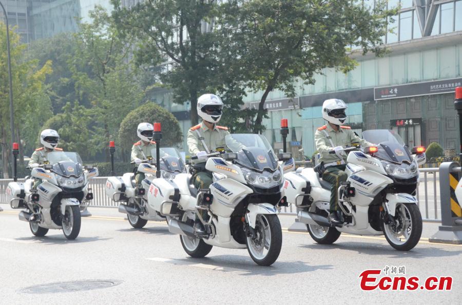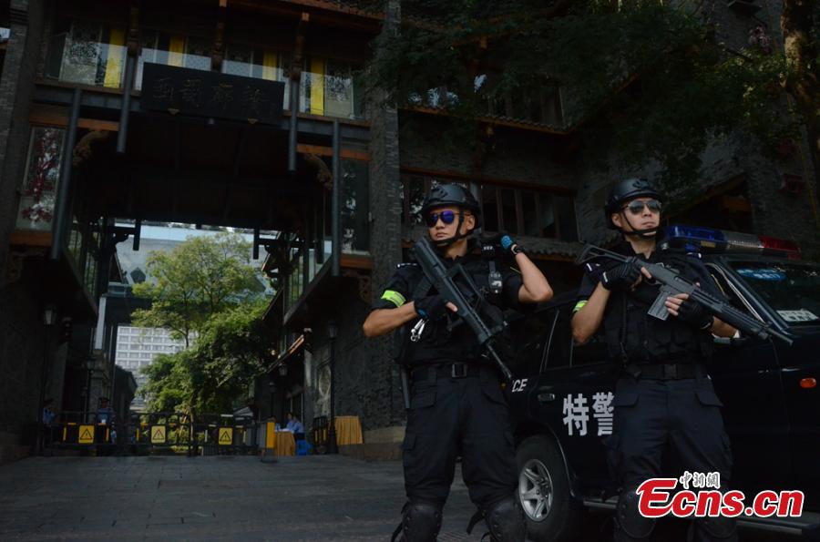 Special police patrol a street in the run-up to the G20 Finance Ministers and Central Bank Governors Meeting in Chengdu City, the capital of Southwest China’s Sichuan Province. Chengdu has boosted security protection for the meeting on July 23 and 24. (Photo: China News Service/Zhong Xin)