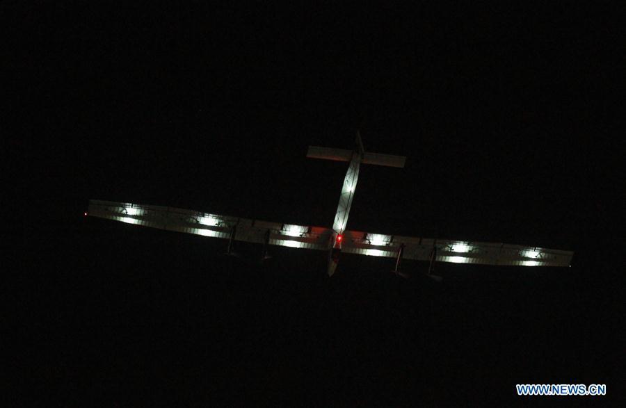 Solar Impulse 2 (SI2) arrives at Al Bateen Executive Airport in Abu Dhabi, the United Arab Emirates (UAE), on July 26, 2016. The fully-solar energy powered plane arrived in Abu Dhabi on Tuesday and completed its global tour. The plane took off for its round-the-world journey in March 2015 from Abu Dhabi, to raise awareness on the viability of renewable energy. (Photo/Xinhua)