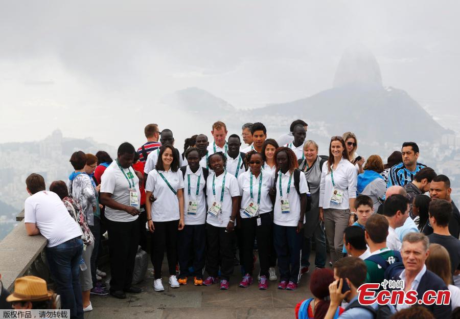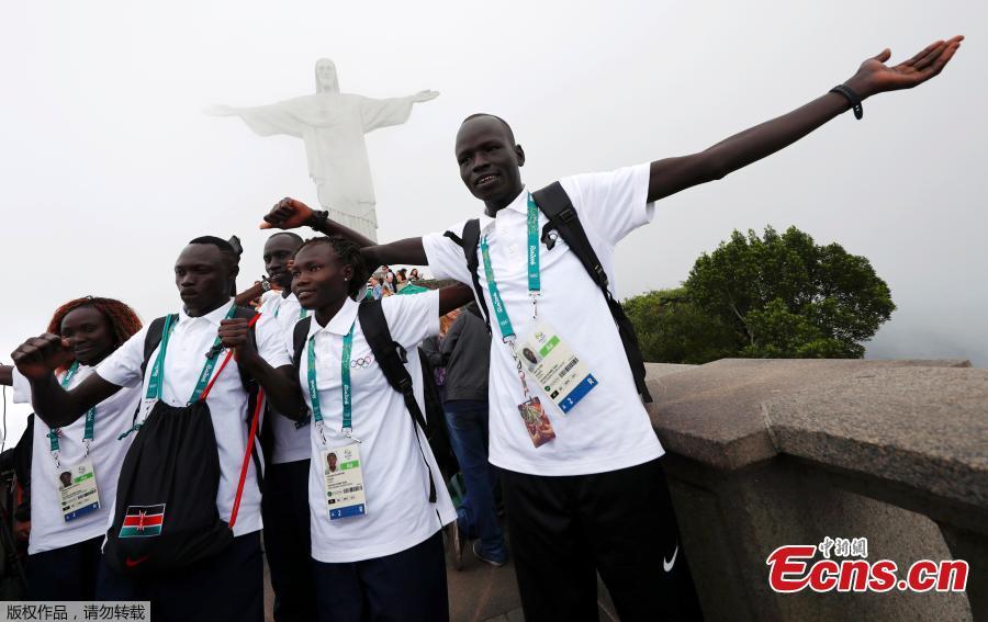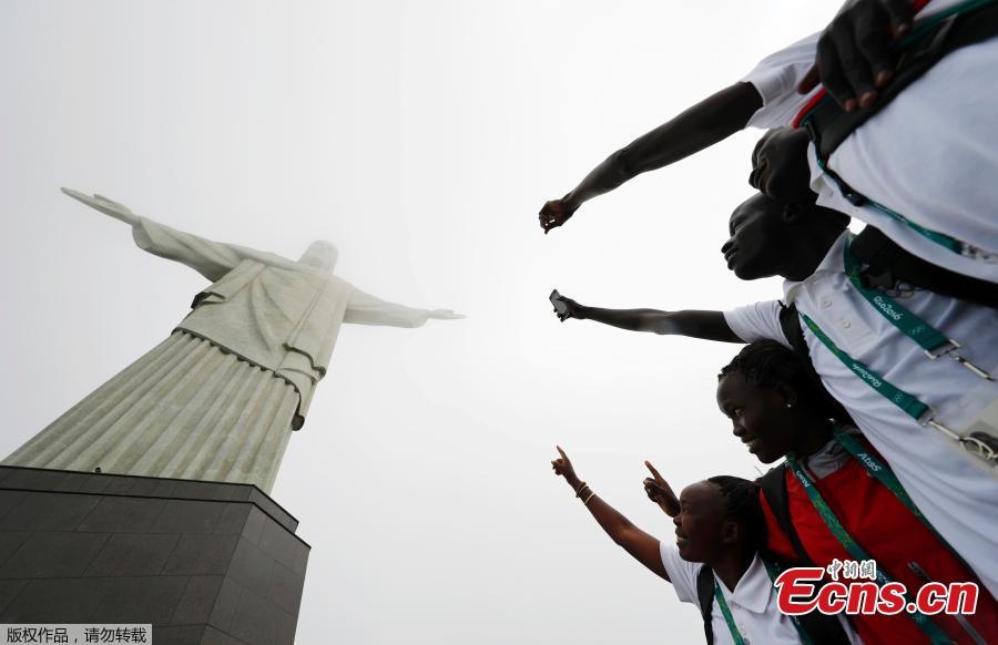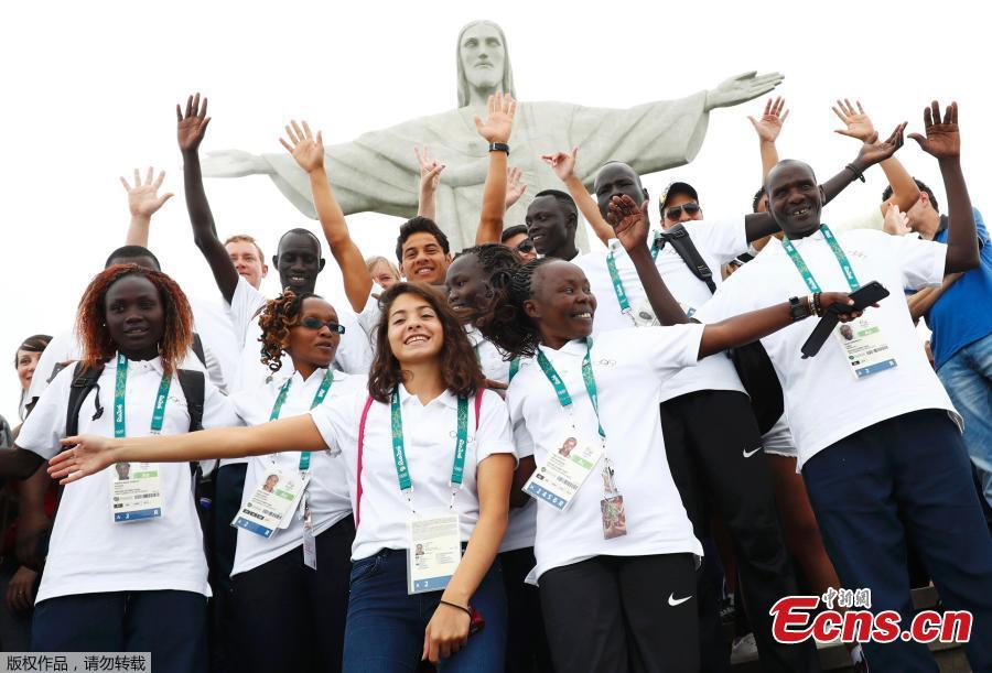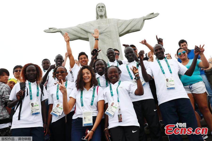 First-ever refugee team ascends to Rio's Christ statue(1/5)