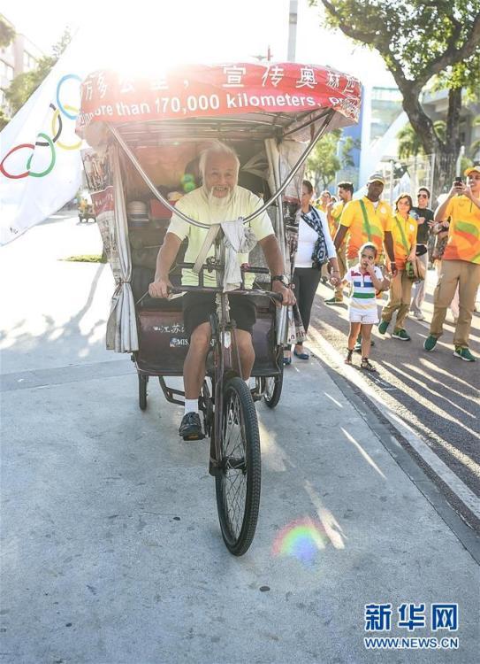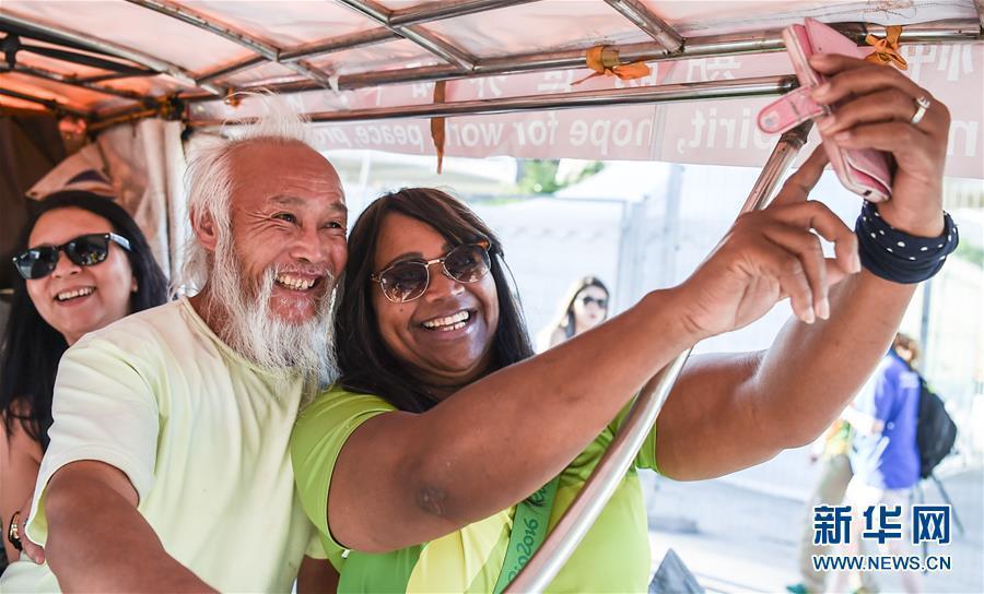 Chen Guanming from China poses with his rickshaw near the Maracan? Stadium, the main stadium to hold the opening ceremony of the Rio 2016 Olympic Games, in Rio de Janeiro, Brazil, July 31, 2016. The 60-year-old farmer from China’s eastern Jiangsu Province has been riding his rickshaw around the world for the Olympics since Beijing won the bid for the 2008 Olympic Games. He rode from China to London for the 2012 Olympics taking almost two years. Chen said he will stay in Rio de Janeiro for about 20 days and then head to Oceania. (Photo/Xinhua)