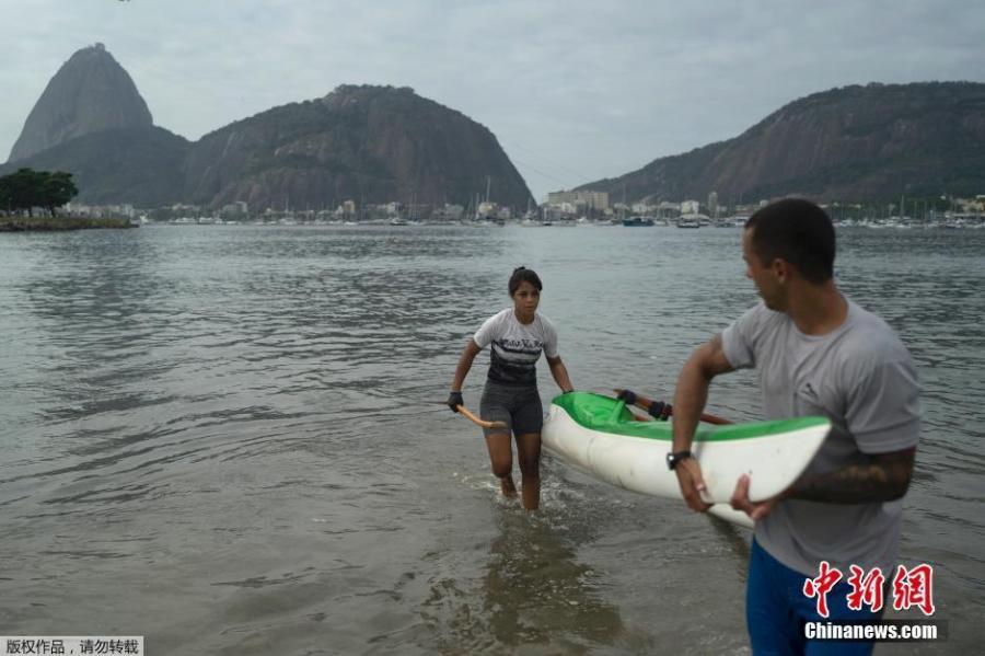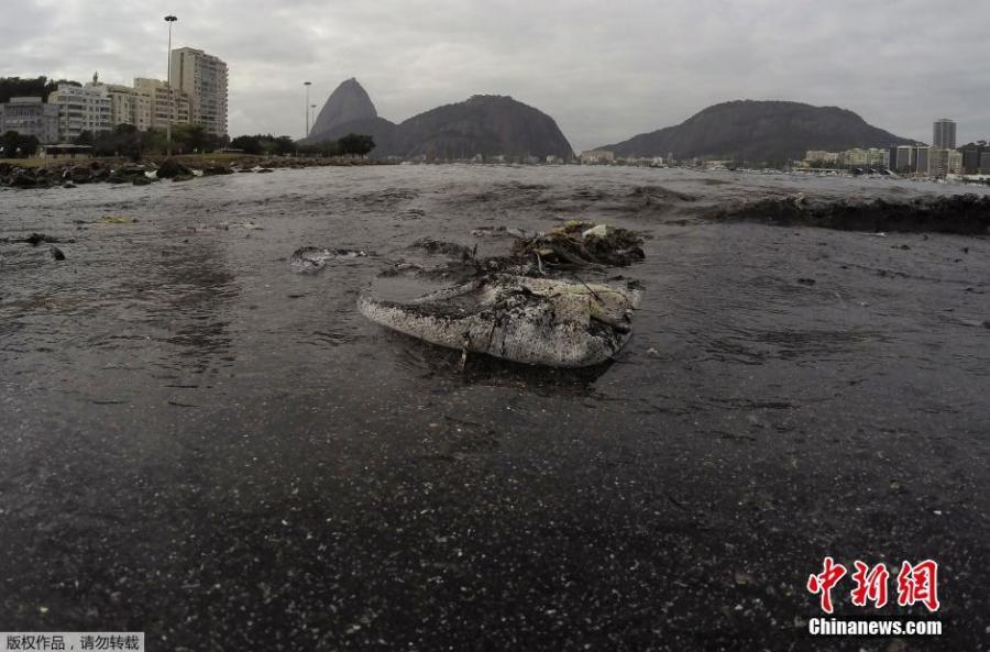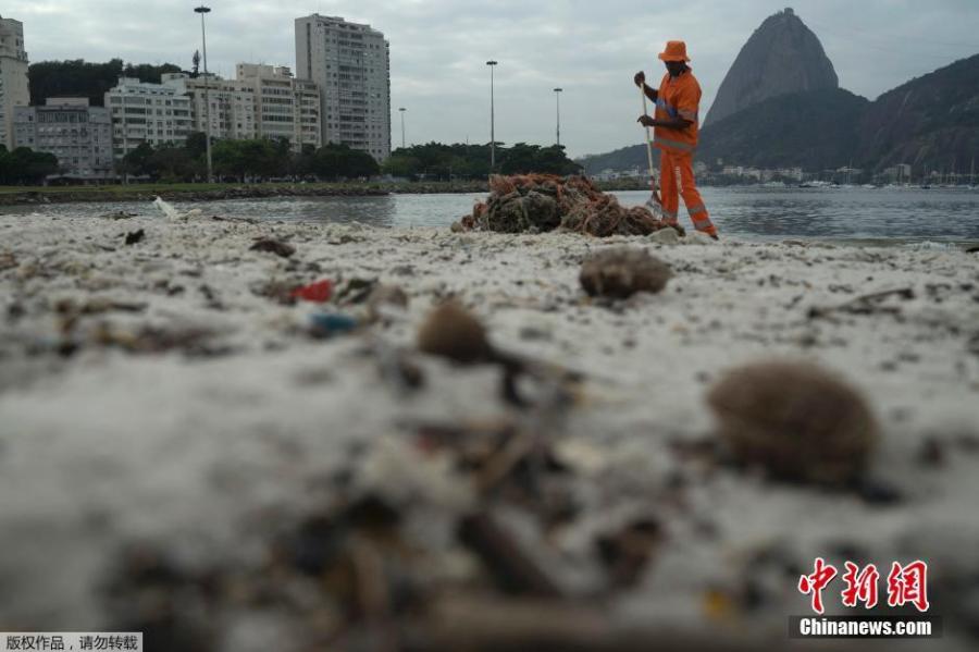A woman runs next to the trash that litters the Botafogo beach next to the Sugar Loaf mountain and the Guanabara Bay in Rio de Janeiro, Brazil, July 30, 2016. (Photo/Agencies)