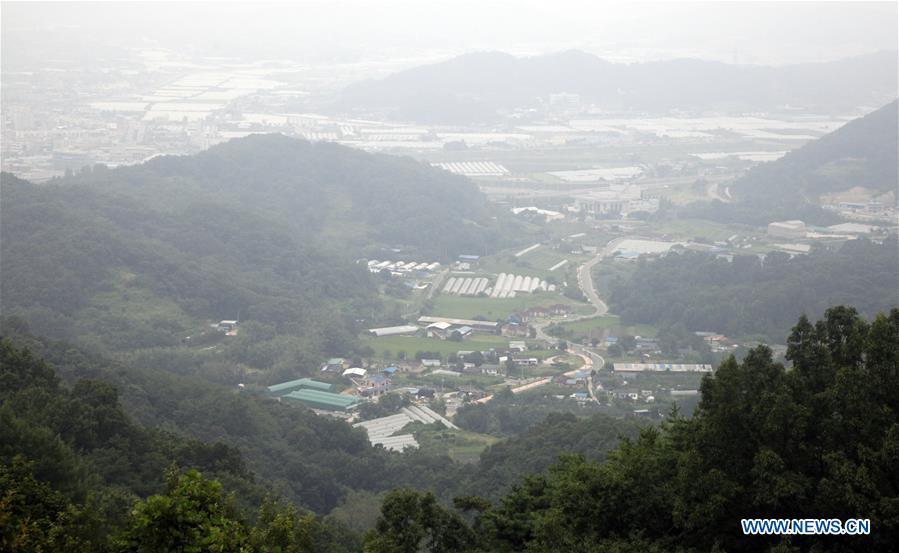 People protest against the deployment of the Terminal High Altitude Area Defense (THAAD) in Seongju county, South Korea, Aug. 2, 2016. It is not difficult to feel how deeply and severely locals are enraged at their government, which agreed with the United States to deploy Terminal High Altitude Area Defense (THAAD) in their hometown. Banners expressing opposition to the U.S. missile defense system are found almost everywhere inside the Seongju county, in which one THAAD battery is set to be installed by the end of next year. Oriental melon farming is an economic mainstay of the county, which yields more than 70 percent of the country's total melon crops. THAAD's X-band radar is known to emit super-strong microwave detrimental to human body. It also causes an environmental hazard, boosting concerns about the farming in Seongju. (Xinhua/Yao Qilin)