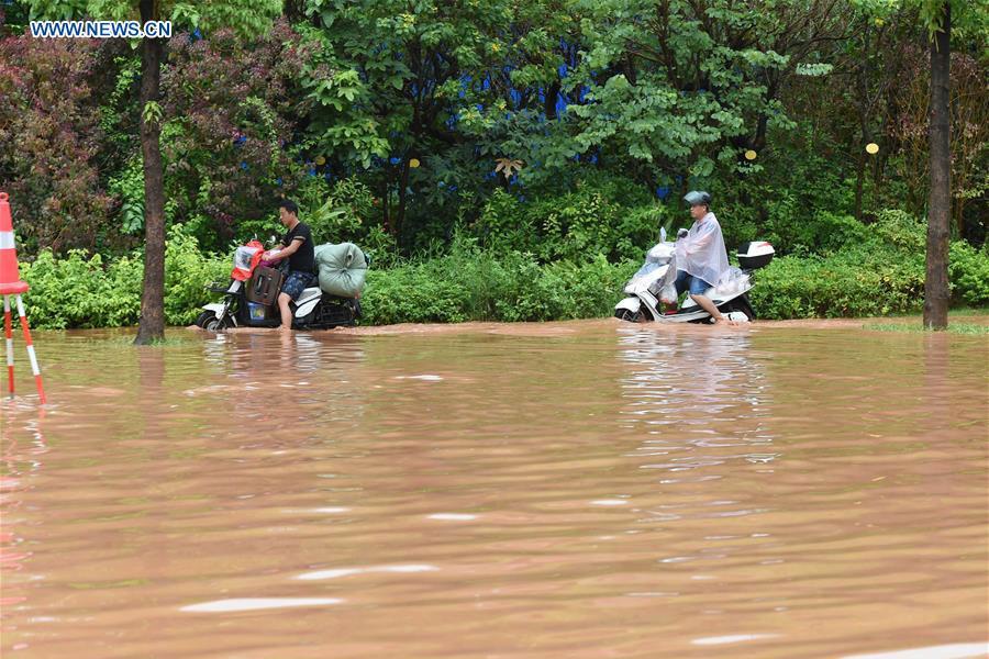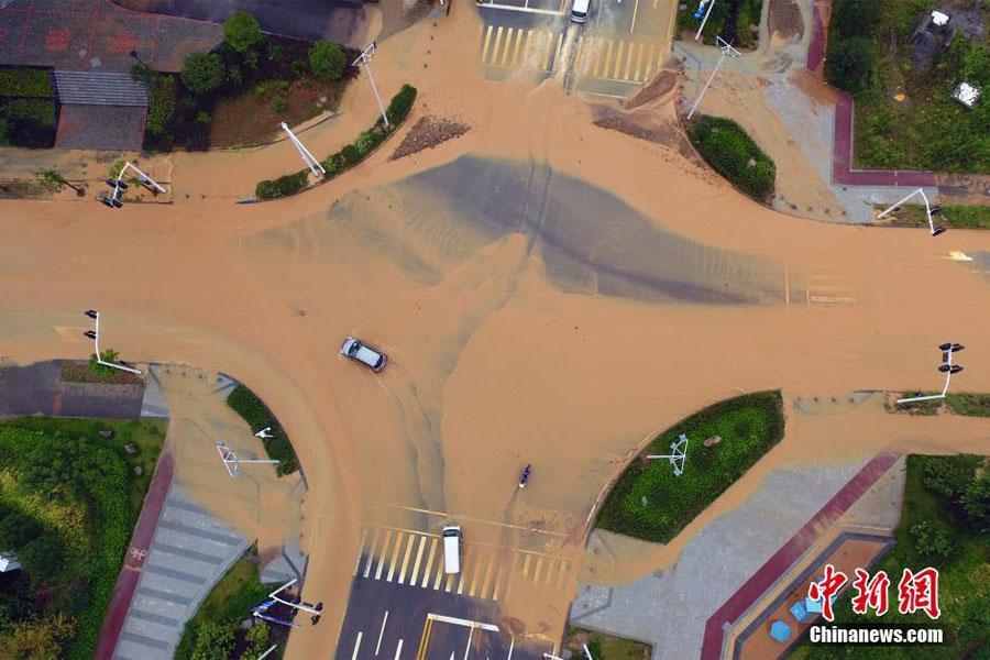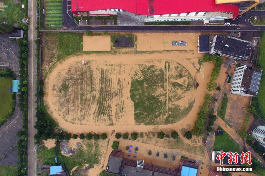 An aerial view of a flooded playground in Yichang city, Central China's Hubei province. (Photo/China News Service)