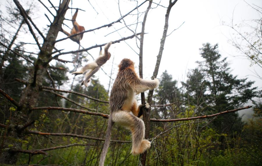 The protected Sichuan snub-nosed monkey, also known as the golden monkey, mainly forages in the middle slopes of mountains at altitudes between 1760-2600 meters above sea level. Food shortages, natural predators, disease, internal fighting, bad weather and other problems are the main threats to their survival. The Shennongjia Golden Monkey Research Center helps protect these monkeys with a video monitoring system that tracks them in their natural environment. (Photo/GT)