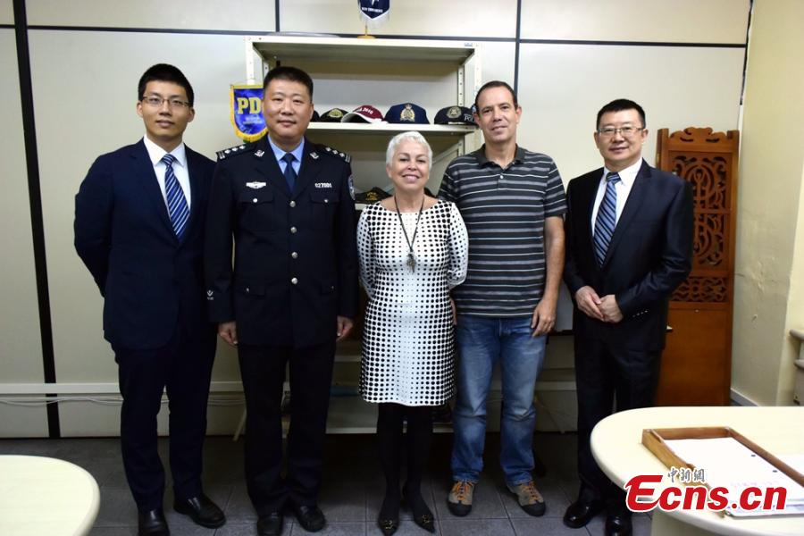 Shao Weimin (2nd, L), China’s liaison officer for police affairs, poses for a photo in Rio de Janeiro, Brazil. Shao, sent by the Ministry of Public Security, arrived in Rio in May to help guarantee the safety of Chinese athletes and tourists. Shao from Wuxi City in Jiangsu Province has extensive experiences in international police cooperation.(Photo: China News Service/Xi Gongxuan)