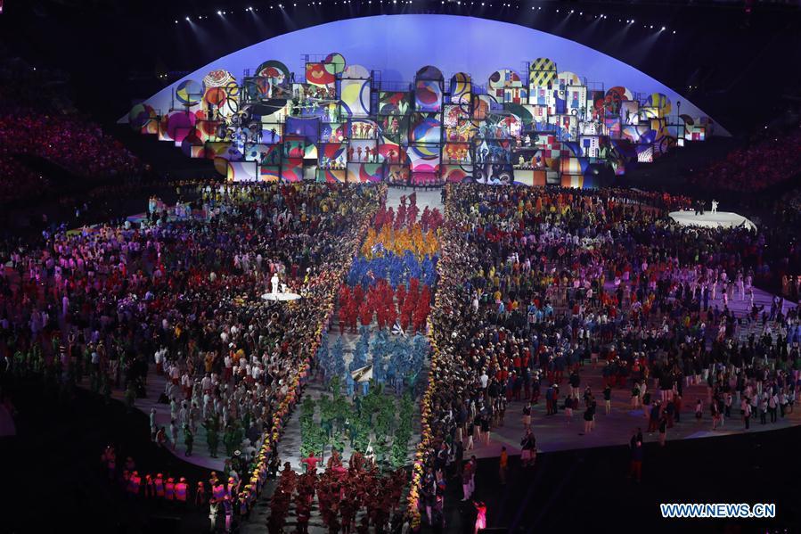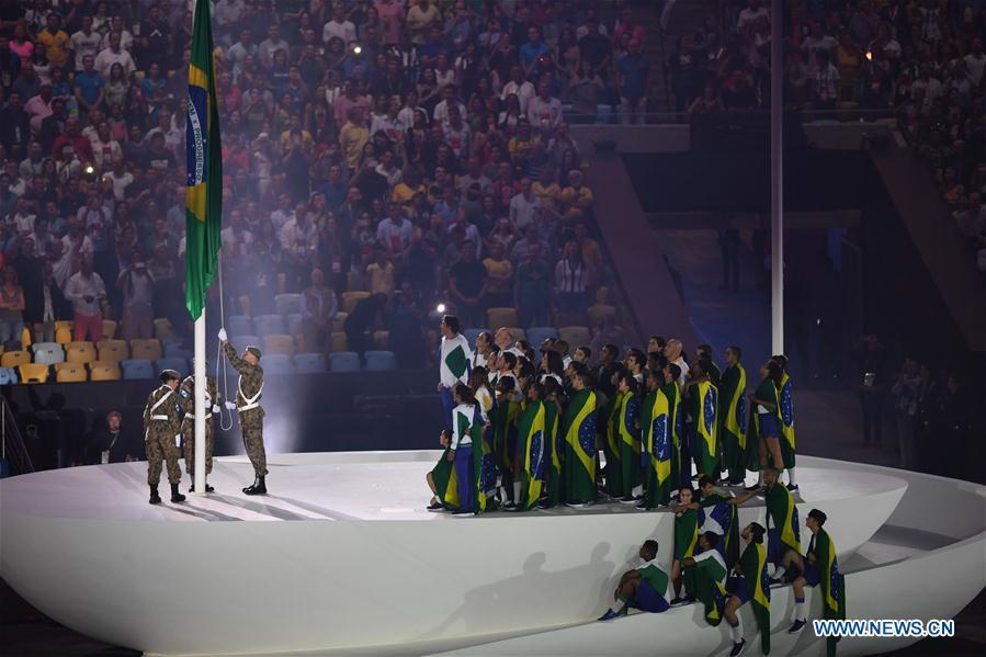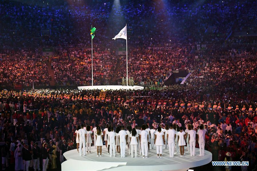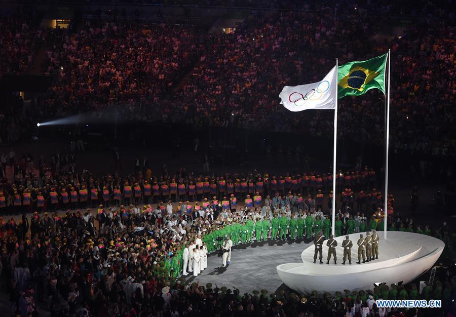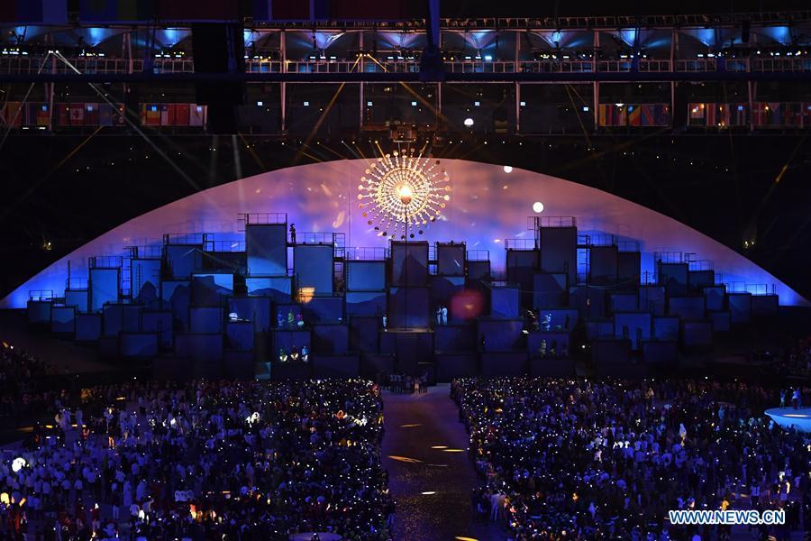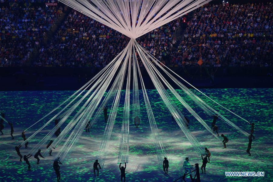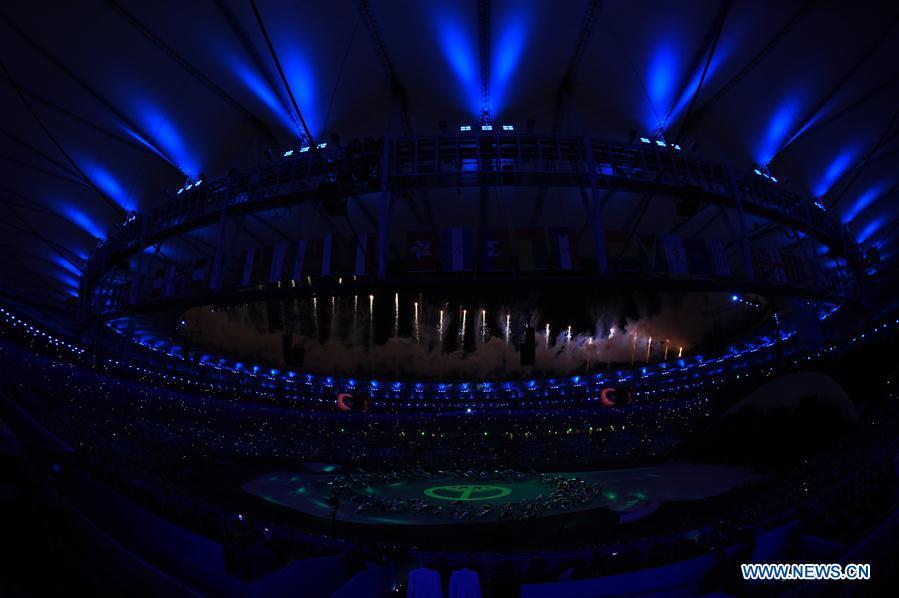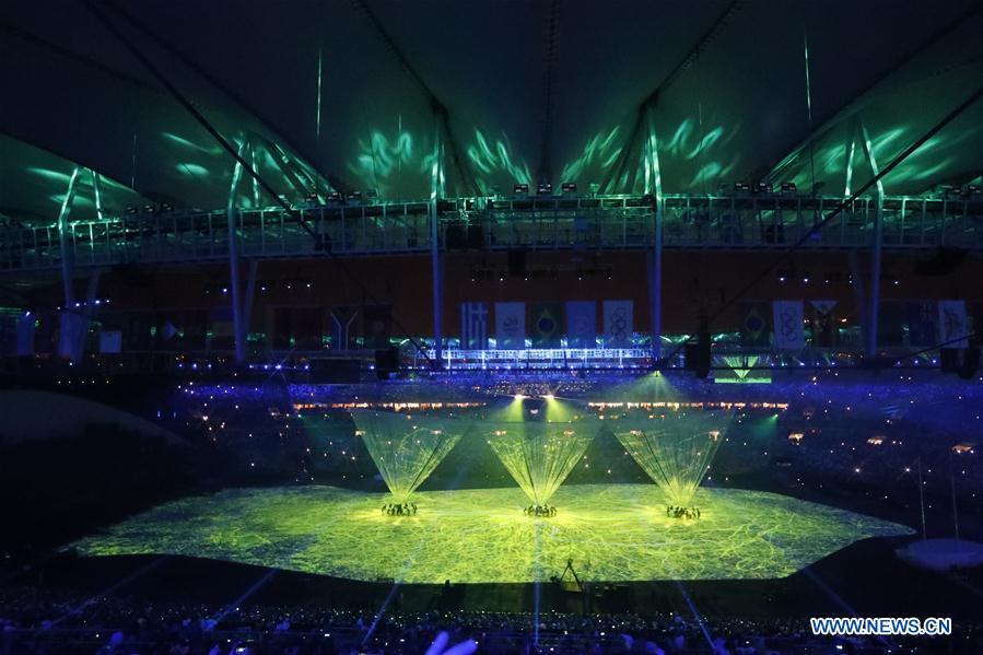 Photo taken on Aug. 5, 2016 shows the opening ceremony of the 2016 Rio Olympic Games at the Maracana Stadium in Rio de Janeiro, Brazil. (Xinhua/Shen Bohan)