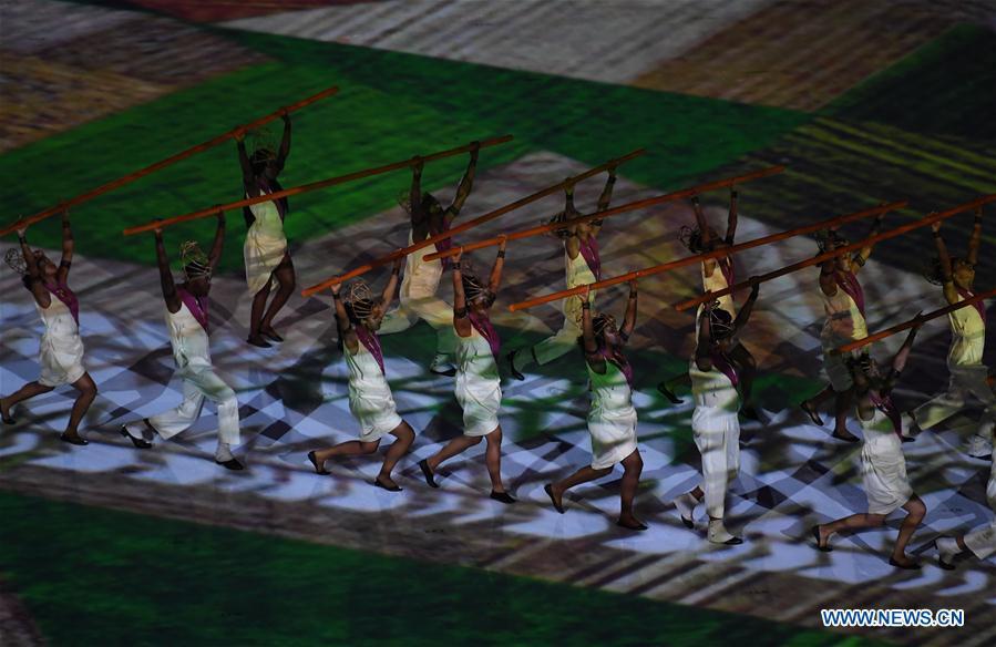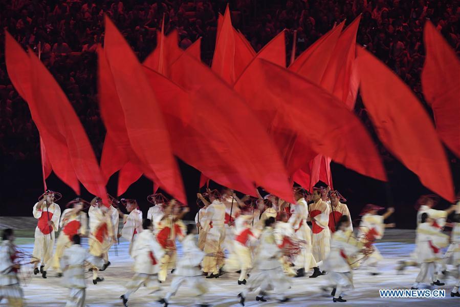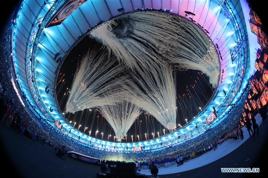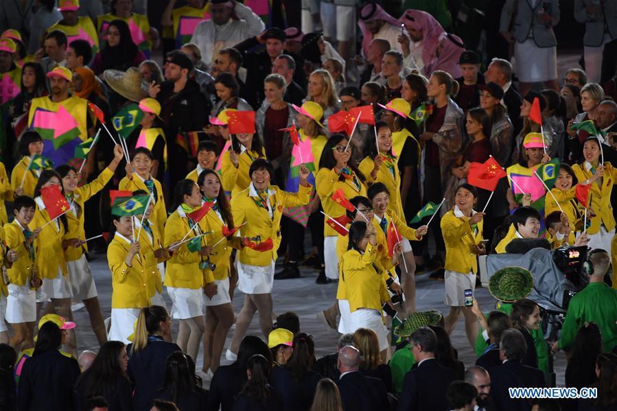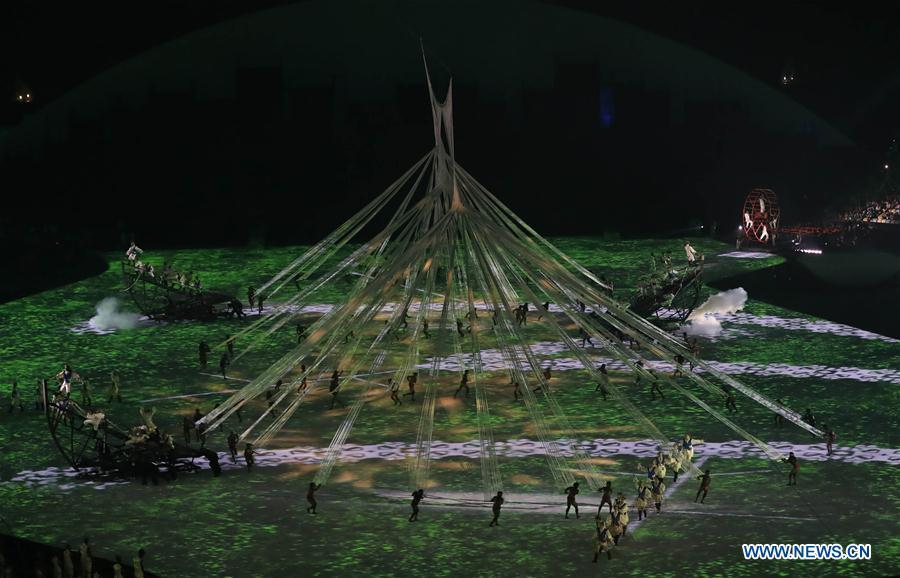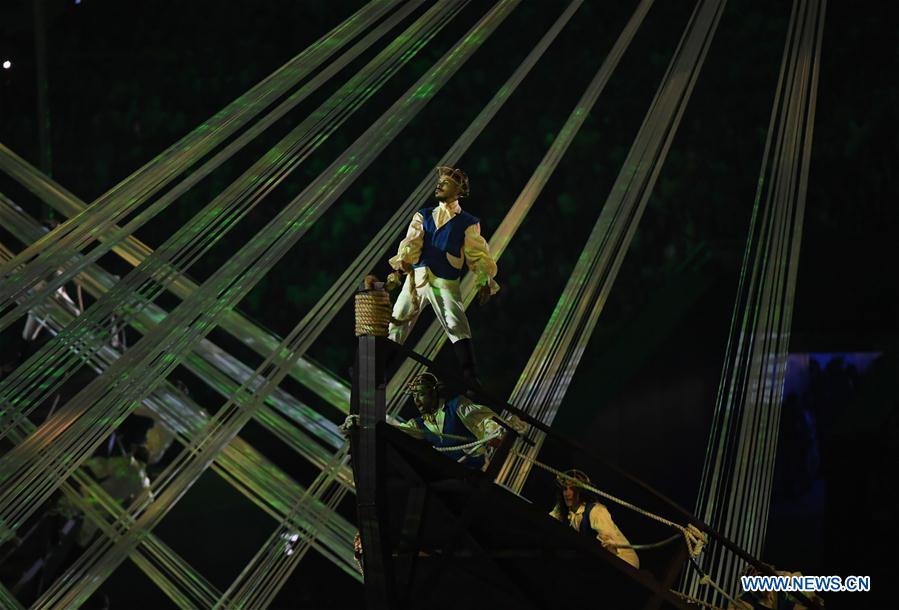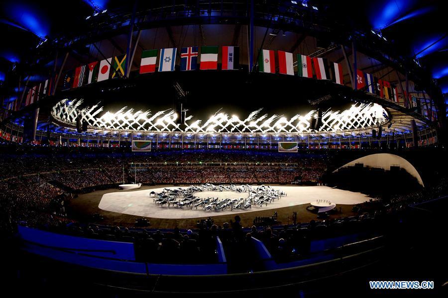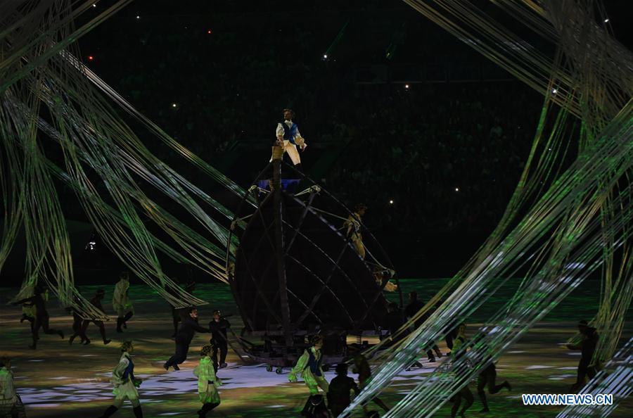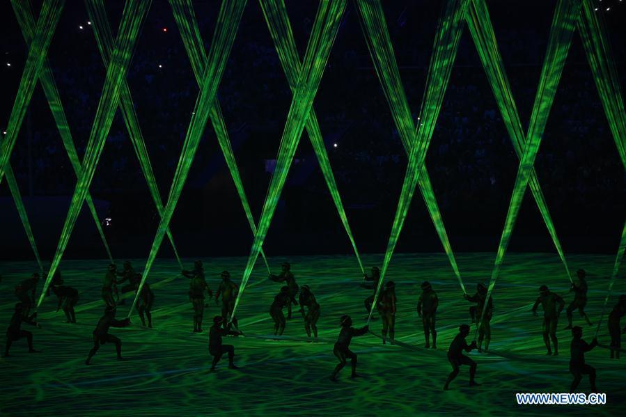Photo taken on Aug. 5, 2016 shows the opening ceremony of the 2016 Rio Olympic Games at the Maracana Stadium in Rio de Janeiro, Brazil. (Xinhua/Shen Bohan)