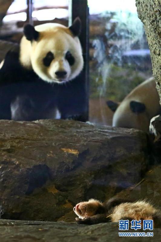 A panda cub is seen at animal park Pairi Daiza in Belgium on August 8, 2016. The adorable giant panda cub made his public debut on August 6. The healthy male cub was born two months ago following a successful mating programme between six-year-old Hao Hao and her mate Xing Hui. Hao Hao and Xing Hui are a pair of giant pandas given on loan by the Chinese authorities in February 2014 to Pairi Daiza for 15 years. (Photo/Xinhua)