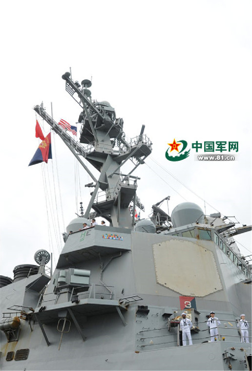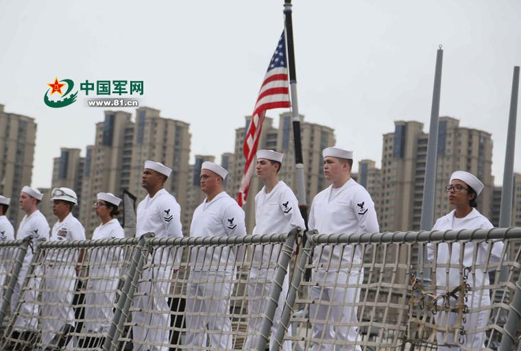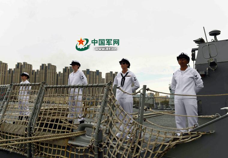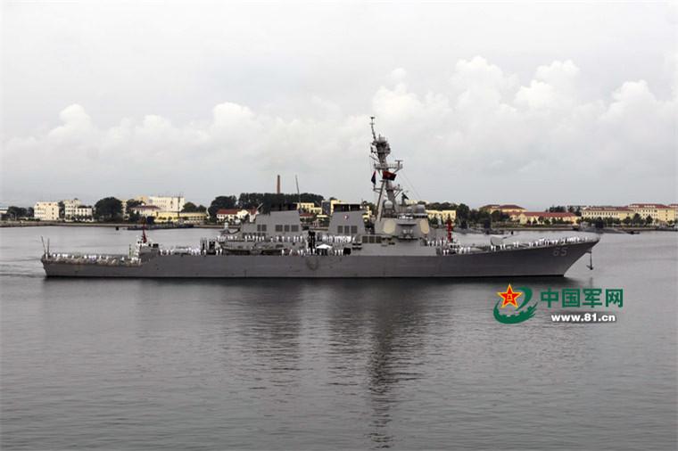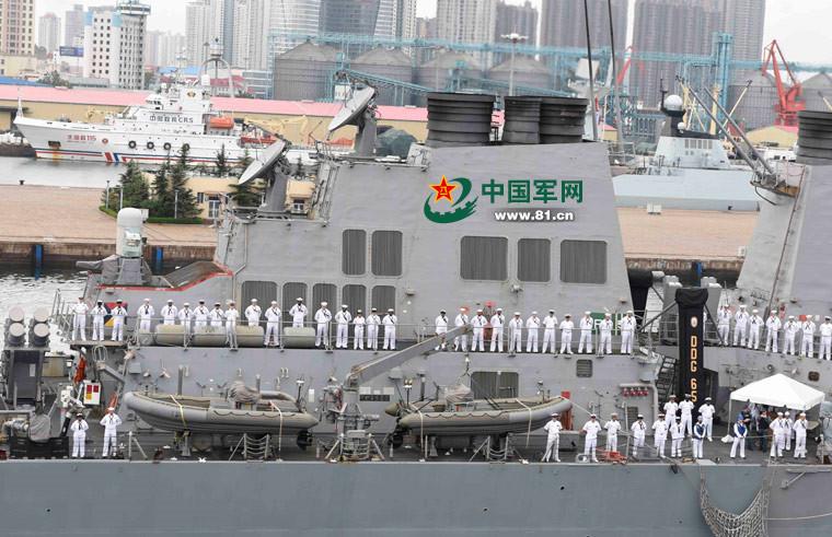 The U.S. guided-missile destroyer USS Benfold (DDG-65) arrives at the pier of a Chinese naval port in Qingdao City of east China's Shandong Province. (Photo/81.cn)