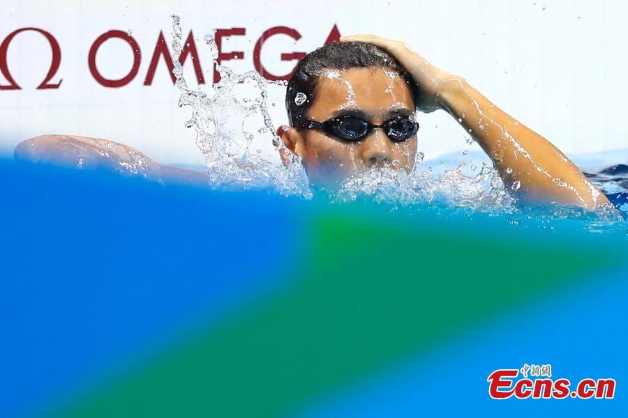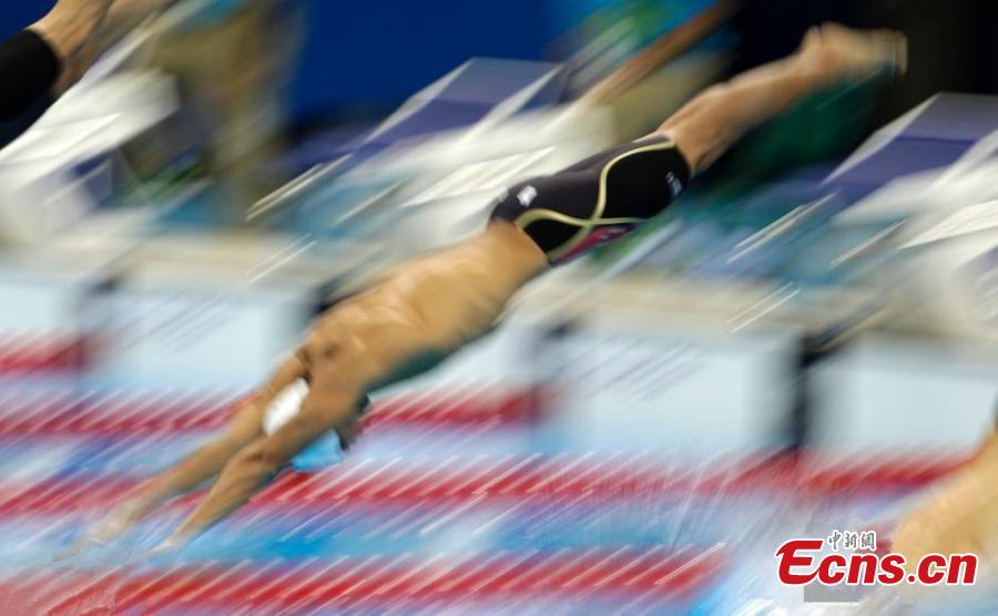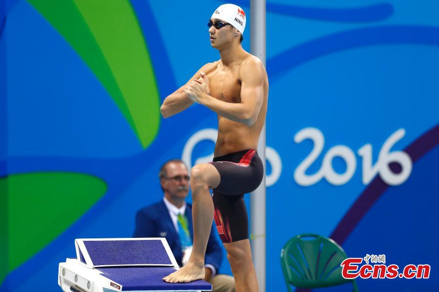 Chinese swimmer Ning Zetao competes in the semifinal of Men's 100m freestyle at Rio Olympics in Rio de Janeiro, Brazil, Aug. 9, 2016. Ning ranked the 12th and failed to advance to the final. (Photo: China News Service/Fu Tian)