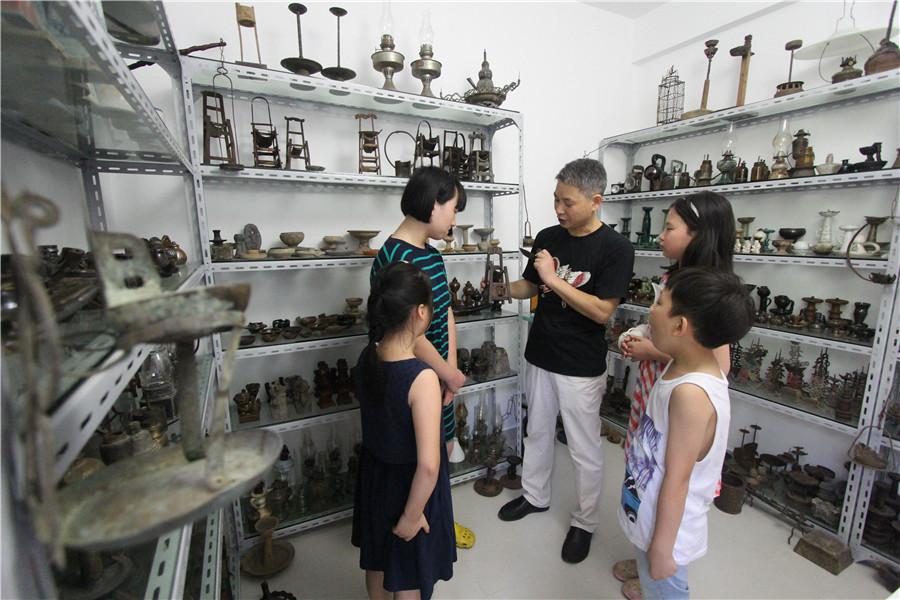 Folk collector Ge Tao has gathered nearly 1,000 oil lamps from across China in four years. The oil lamps he collected are in various shapes and from different periods. The oldest lamp may date back to the Western Han Dynasty (206BC - AD24). (Photo/Asianewsphoto)