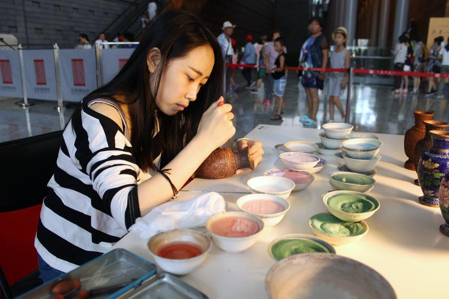 This year, the Capital Museum is celebrating 35 years of its opening with the ongoing exhibition Eight Marvelous Handicrafts of Beijing. The best of the city’s traditional craftsmanship in enamel, lacquerware and more is being exhibited through nearly 270 sets of handicraft articles on the show that runs through Nov 9.
