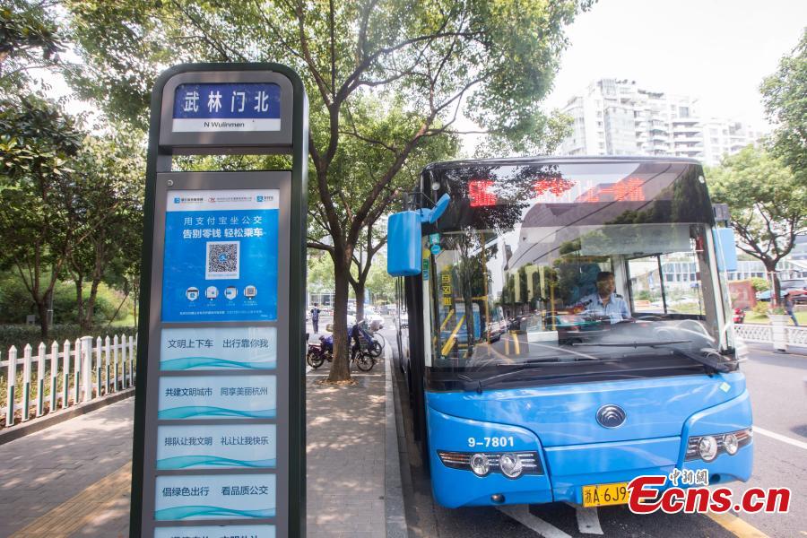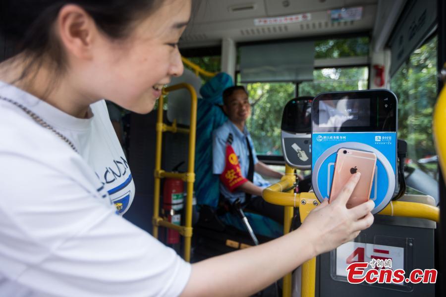 A passenger uses Alipay to pay the bus fare in Hangzhou City, the capital of East China’s Zhejiang Province, Aug. 16, 2016. Hangzhou has become the first Chinese city to allow bus passengers to pay with Alipay, the popular mobile payment service of Alibaba, which is headquartered in Hangzhou. A total of 20 buses will join the pilot program from Aug. 11 to Dec. 30. (Photo: China News Service/Xu Kangping)