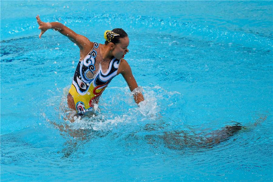 China's Huang Xuechen and Sun Wenyan compete during the synchronized swimming duet free routine at the 2016 Summer Olympics in Rio de Janeiro, Brazil, August 16, 2016. (Photo/chinadaily.com.cn)