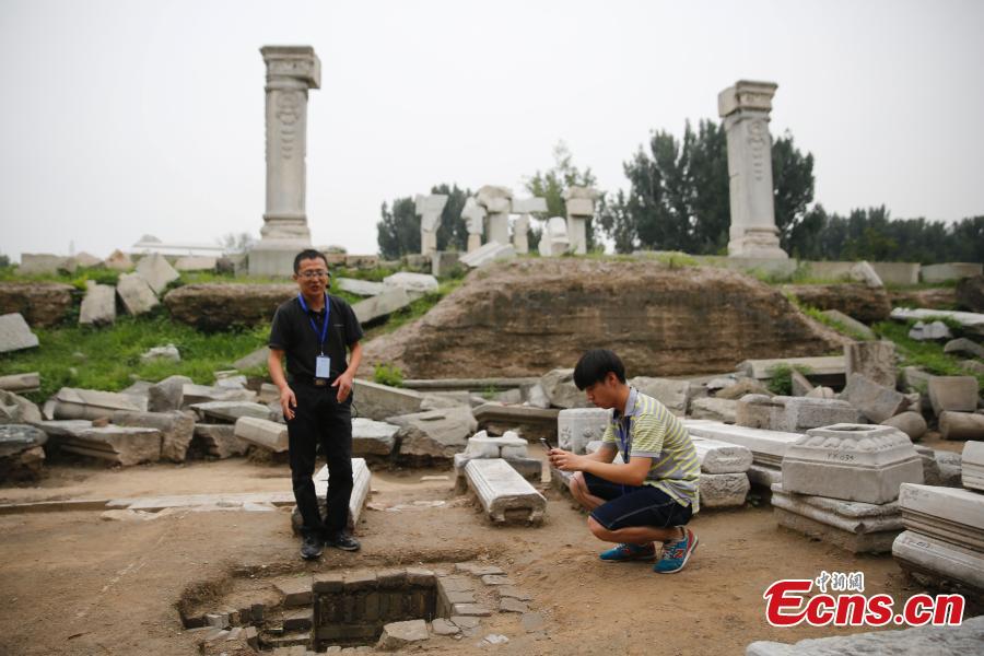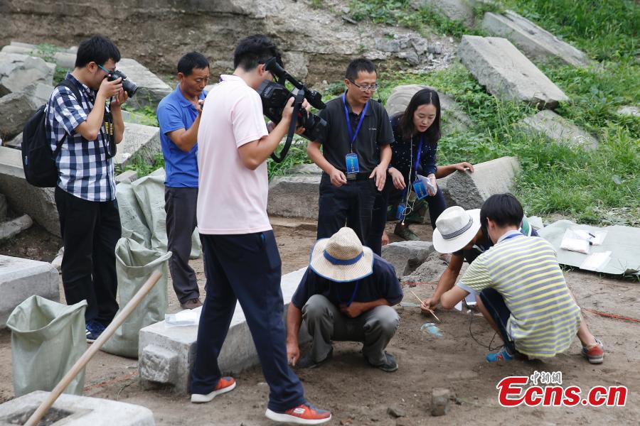 A live broadcast of archeological excavation at Yuanmingyuan, or the Old Summer Palace, in Beijing, Aug. 17, 2016. It is the first time the excavation of the former imperial garden has been broadcast live on microblogging site Weibo, mobile messaging app WeChat and video streaming services. An officer said the live broadcast aims to raise public awareness of excavation and cultural relics. (Photo: China News Service/Zhong Xin)