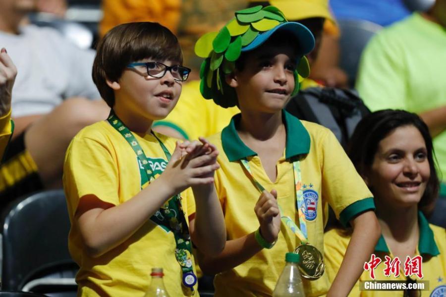 Zhang Jike and Xu Xin of China celebrate after winning Maharu Yoshimura and Niwa Koki of Japan during the men's team gold medal match of table tennis at the 2016 Rio Olympic Games in Rio de Janeiro, Brazil, Aug. 15, 2016. (Photo: China News Service/Sheng Jiapeng)