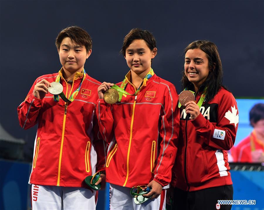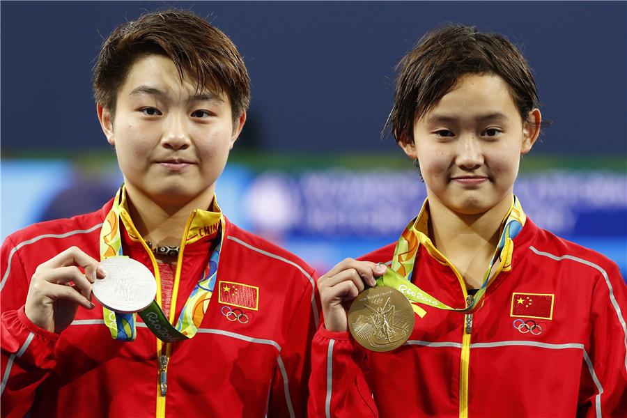 Chinese teenagers Ren Qian and Si Yajie claims the gold and silver medals respectively in the women's individual 10 metre platform event at the2016 Rio Olympic Games on August 18, 2016 in Rio de Janeiro, Brazil. (Photo/chinadaily.com.cn)