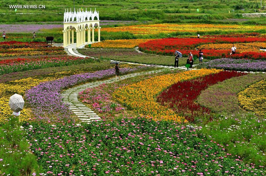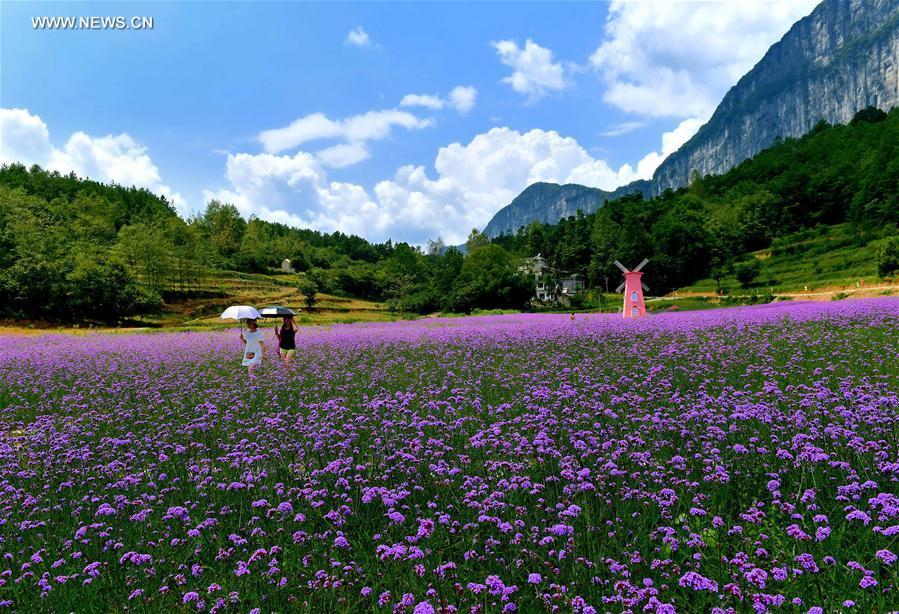 Photo taken on Aug. 21, 2016 shows flowers in the fields in Mazhe Village of Enshi, central China's Hubei Province. (Photo/Xinhua)