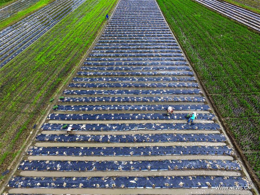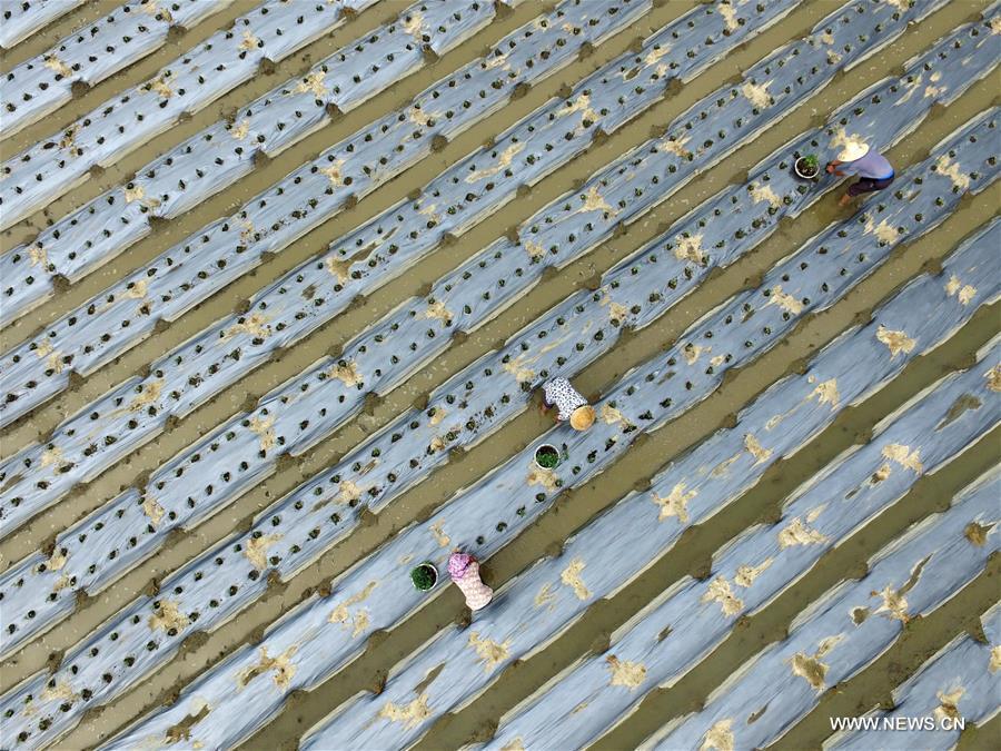 Farmers transplant tomato seedlings at a field in Napo Town, Baise City of south China's Guangxi Zhuang Autonomous Region, Aug. 20, 2016. Farmers are busy with sowing vegetable in Baise of Guangxi after "Liqiu", the first day of autumn on Chinese lunar calendar. (Photo/Xinhua)