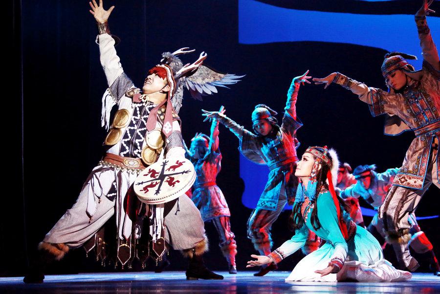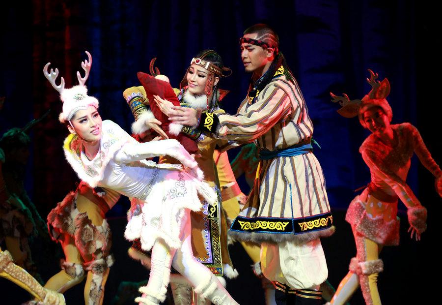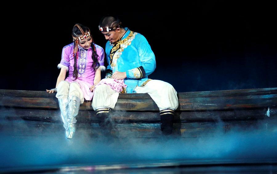 The 5th Minorities Art Festival featured the dance drama Wusuli Chuan Ge in Beijing, Aug 22, 2016. The drama is a classic legend of the Hezhe ethnic group who live in Heilongjiang province. (Photo/Xinhua)