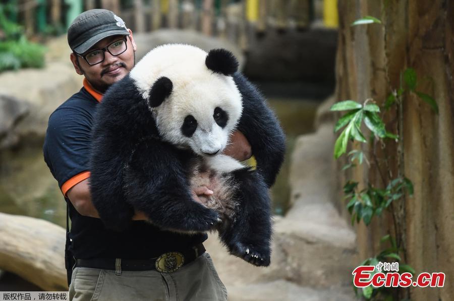 One-year-old female giant panda Nuan Nuan plays inside the panda enclosure at the National Zoo in Kuala Lumpur, Malaysia, Aug. 23, 2016. The panda, the offspring of Xing Xing and Liang Liang, two giant pandas on loan to Malaysia from China in 2014, celebrated its first birthday. (Photo/Agencies)