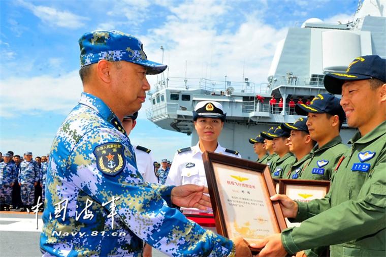 New carrier-borne fighter pilots earns their flight qualification certificates upon successful completion of ski-jump take-off and arrested landing on the flight deck of the aircraft carrier Liaoning in the Bohai sea in mid-August, 2016. (Photo/81.cn)