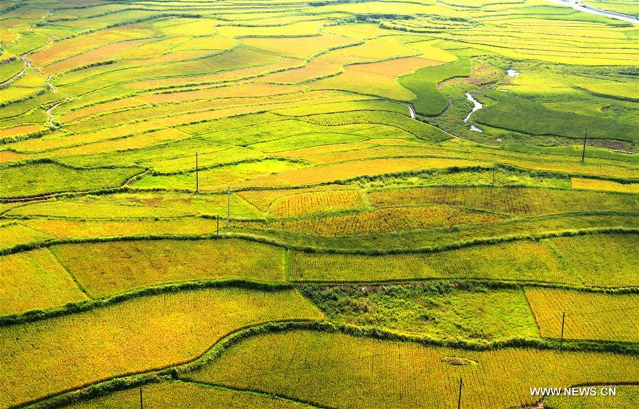Photo taken on Aug. 23, 2016 shows paddy fields in Huayuan County, Xiangxi Tujia and Miao Autonomous Prefecture, central China's Hunan Province. (Photo/Xinhua)