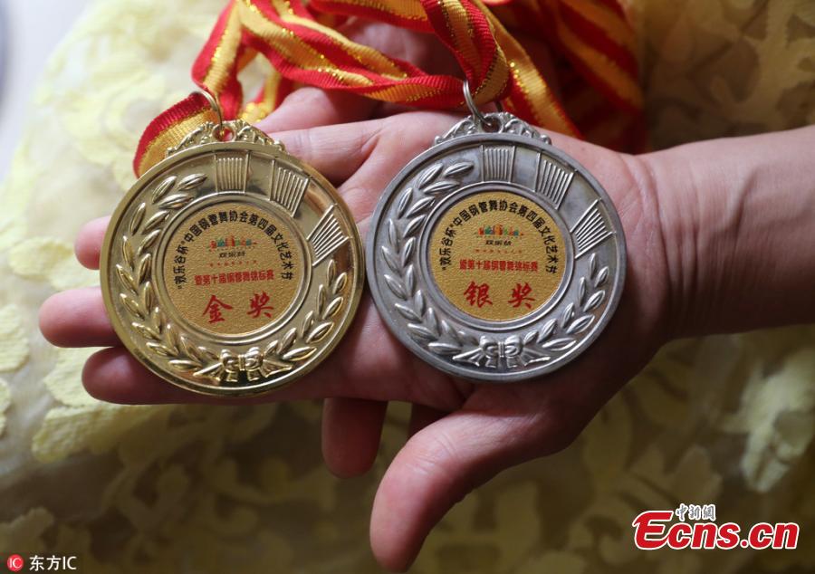 Zhang Jing, 53, pole dances at a training center in Zhengzhou City, the capital of Central China’s Henan Province. Zhang had to retire two years ago when the state-owned company she worked for became bankrupt. Supported by her son, a dance trainer at a gym, Zhang started learning yoga before falling in love with pole dancing, usually working out with women about 30 years younger than her. Despite her age, Zhang practices hard and tries challenging body movements. In a recent pole dance championship in Beijing, she avoided the seniors age group, and still won one gold medal and one silver medal in the middle-age group. Zhang is not only able to keep in shape but has become a role model to others. She says nothing is too late to start if only a person has a dream. (Photo/IC)