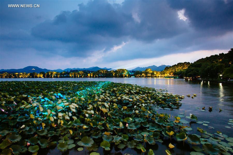 Photo taken on Aug. 26, 2016 shows the night view of West Lake in Hangzhou, capital of east China's Zhejiang Province. The G20 Summit will be held in Hangzhou on Sept. 4 to 5. (Xinhua/Zhang Cheng)