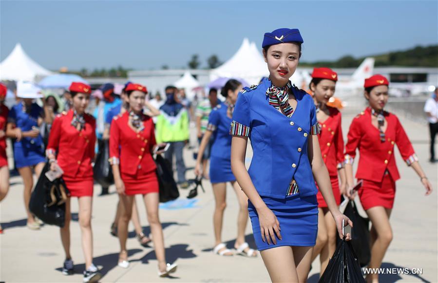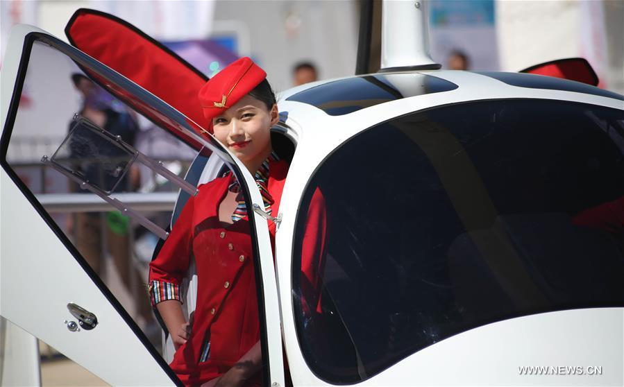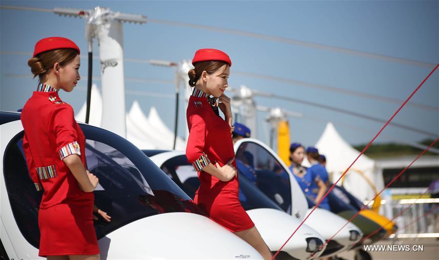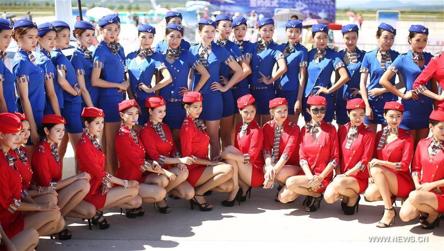 Models pose for photo during the 5th Shenyang Faku International Flight Conference in Shenyang, capital city of northeast China's Liaoning Province, Aug. 27, 2016. (Xinhua/Yao Jianfeng)