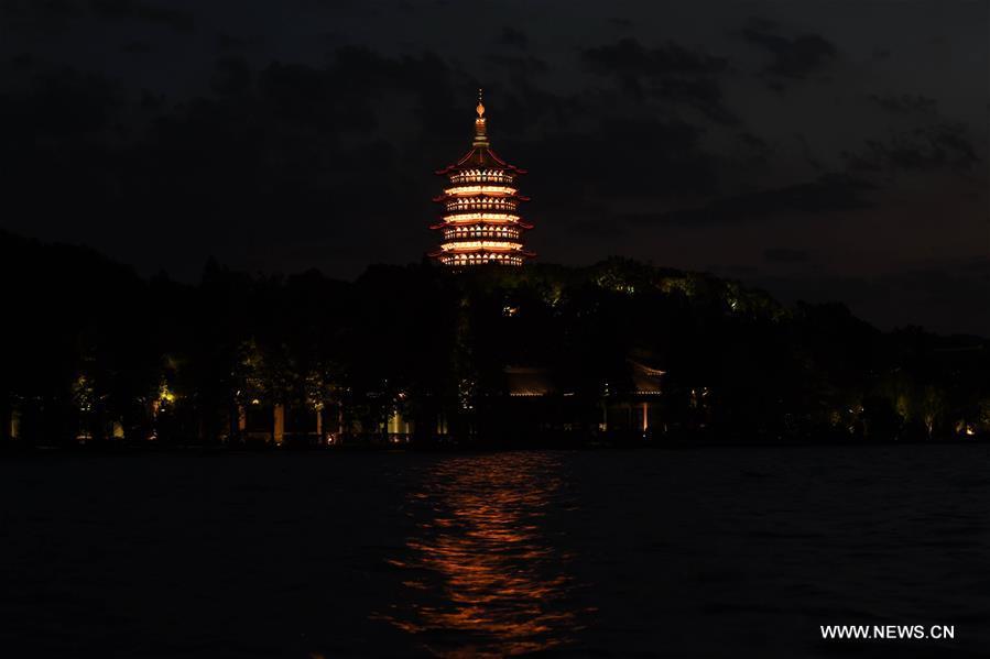 Photo taken on Aug. 28, 2016 shows night view of the Leifeng Pagoda of West Lake in Hangzhou, capital of east China's Zhejiang Province. China will host the 2016 Group of Twenty (G20) summit in Hangzhou on Sept. 4-5. (Xinhua/Chen Yehua)