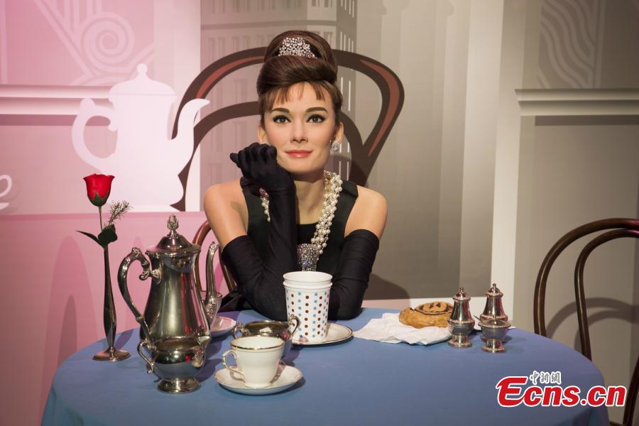 A wax figure of actress Audrey Hepburn playing in "Roman Holiday” at the Madame Tussauds museum in Chongqing, Aug. 29, 2016. Covering an area of 2,000 square meters, the museum will feature a typical array of more than 50 wax figures, including Hollywood stars, sports figures and international celebrities. It will officially open on Sep. 10. (Photo: China News Service/Zhong Xin)