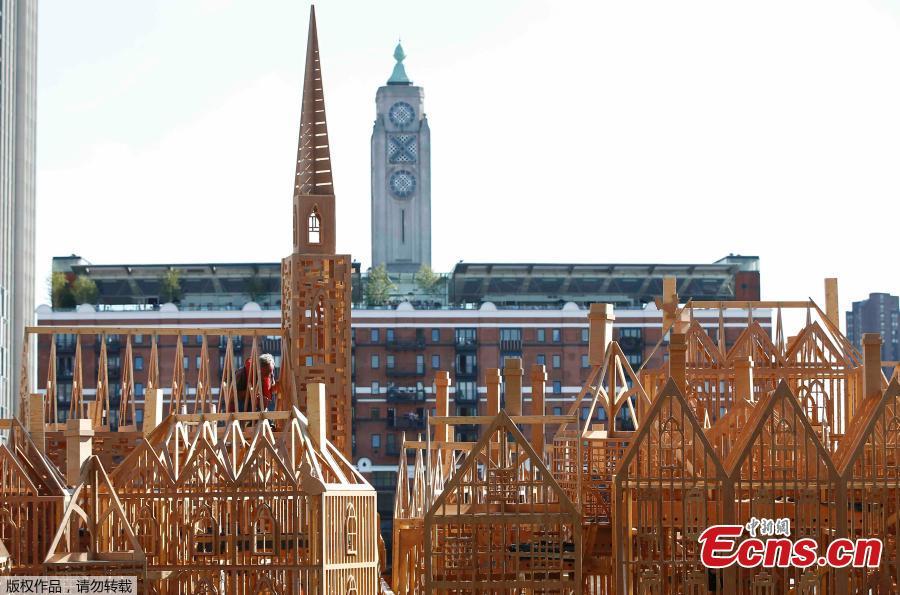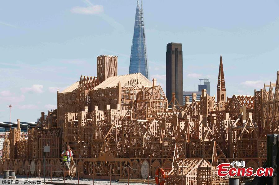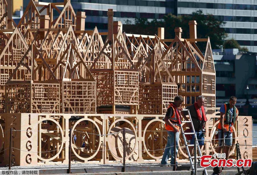 A 120-metre long sculpture of a 17th-century London skyline is completed for an event where it will be set alight, re-telling the story of the 1666 Great Fire of London, in London, Britain August 30, 2016. (Photo/Agencies)