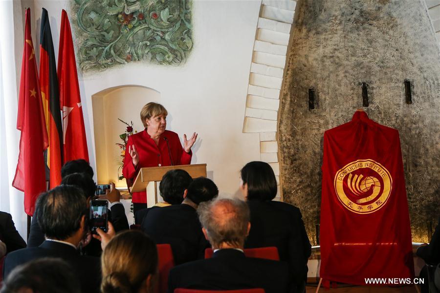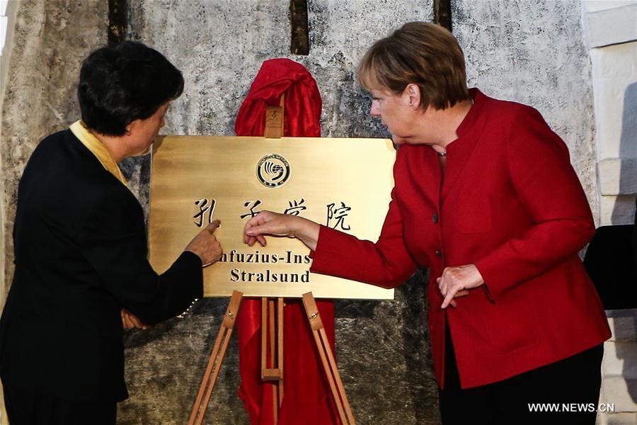 German Chancellor Angela Merkel (2nd R) attends the opening ceremony of the Confucius Institute in Stralsund Aug. 30, 2016. Angela Merkel on Tuesday inaugurated Germany's 17th Confucius Institute in the Baltic town. (Xinhua/Zhang Fan)