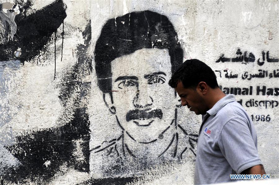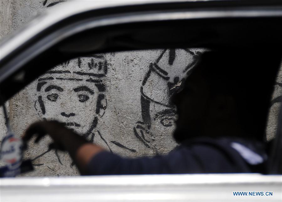 A Yemeni man drives past a drawing of a victim of enforced disappearance at a street in Sanaa, Yemen, Aug. 30, 2016. International Day of the Victims of Enforced Disappearances is marked on Aug. 30 each year. (Xinhua/Hani Ali)