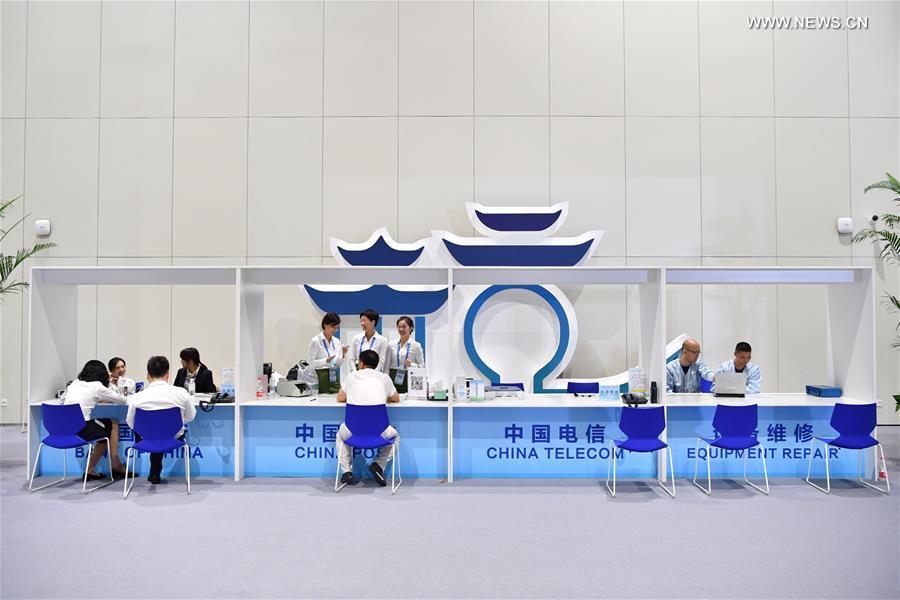 Photo taken on Aug. 31, 2016 shows the media center of the G20 summit in Hangzhou, capital of east China's Zhejiang Province. The G20 summit will be held in Hangzhou on Sept. 4 and 5. (Xinhua/Li Xin)