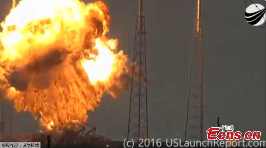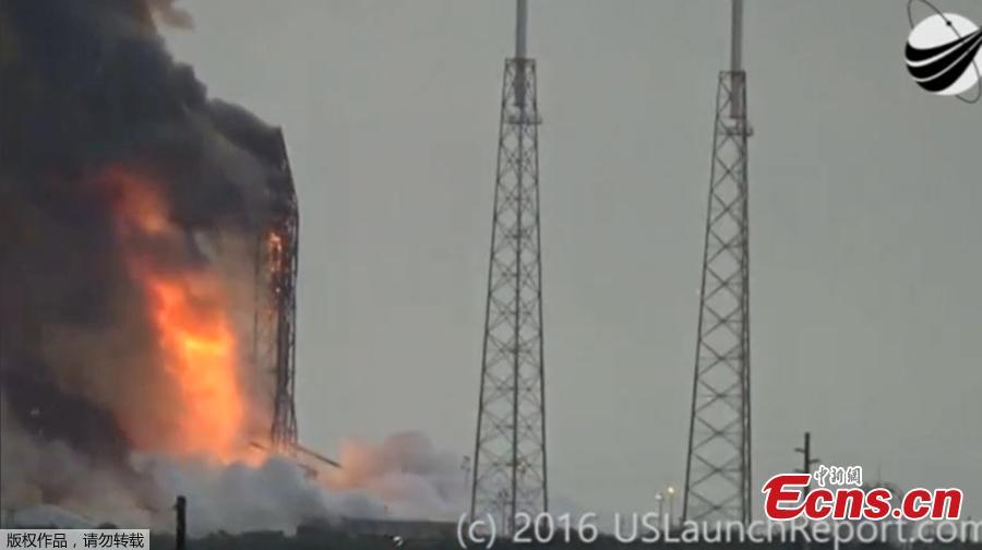 An explosion on the launch site of a SpaceX Falcon 9 rocket is shown in this still image from video in Cape Canaveral, Florida, U.S. September 1, 2016. U.S. (Photo/Agencies)