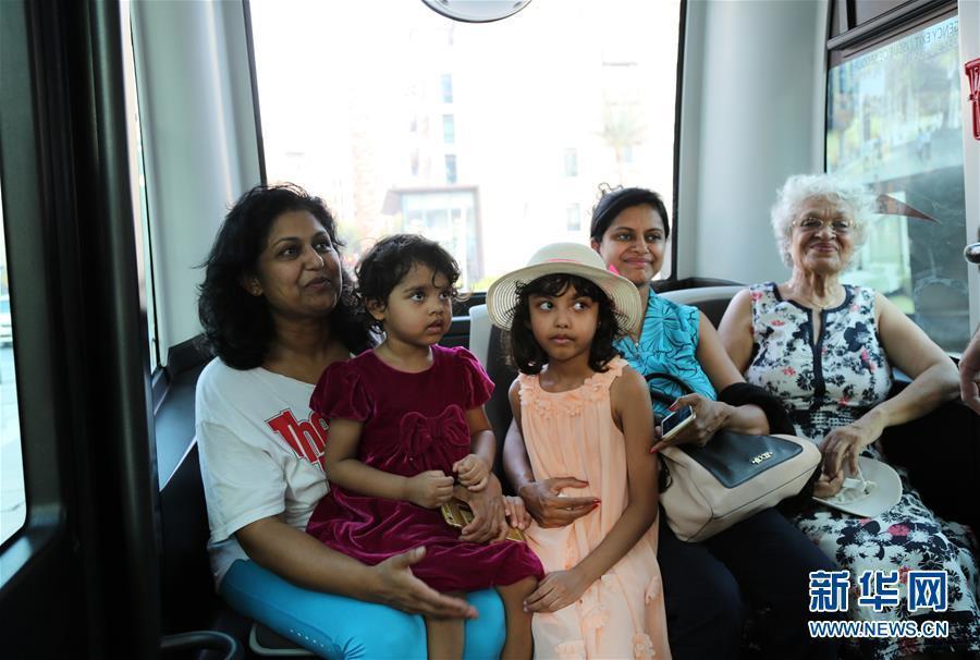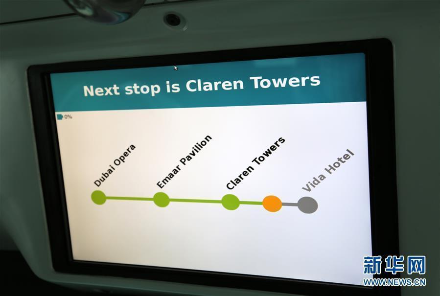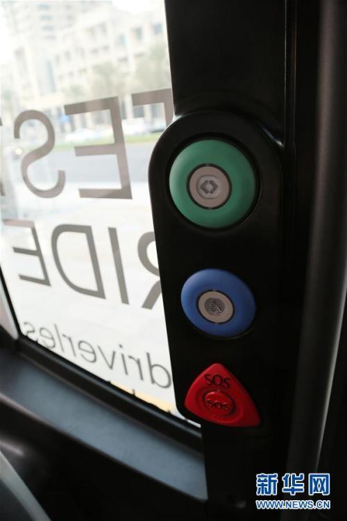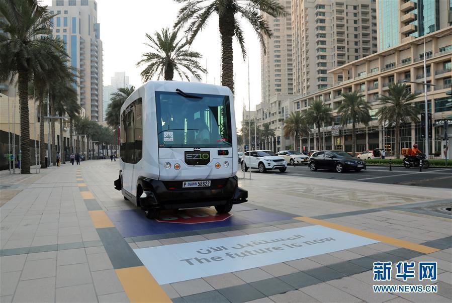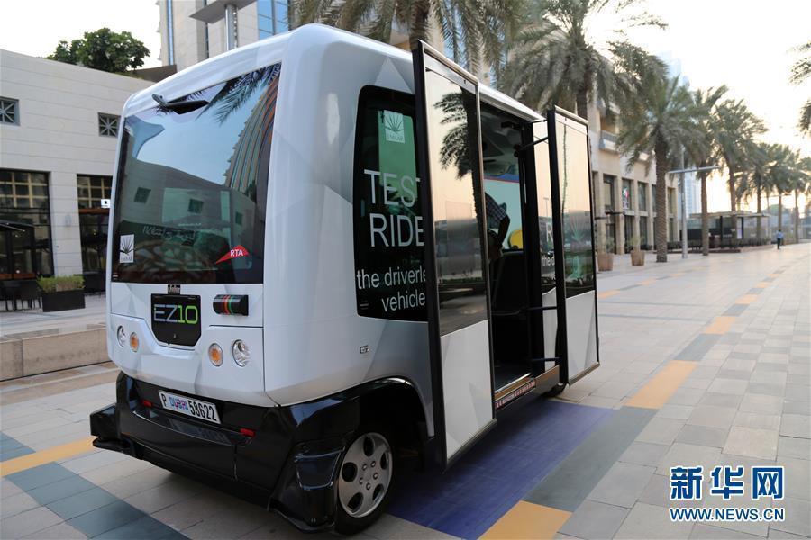 The autonomous EZ10 on a trial run in Dubai, Sept. 1, 2016. It can carry up to 10 passengers to travel short distances over pre-programmed routes in multi-use environments. The test by Dubai’s Roads and Transport Authority will continue for a month.(Photo/Xinhua)
