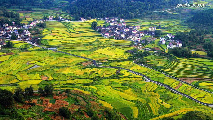 Photo taken on Sep. 2, 2016 shows the paddy fields in Shake Village, Xiangxi Tujia and Miao Autonomous Prefecture, central China's Hunan Province. (Xinhua/Long Enze)
