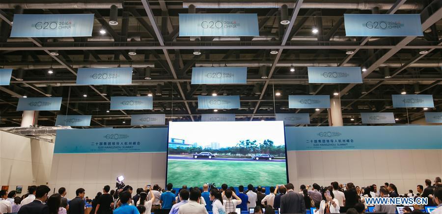 Journalists watch live broadcast at media center of the G20 summit in Hangzhou, capital of east China's Zhejiang Province, Sept. 4, 2016. The 11th G20 summit opened here on Sunday. (Xinhua/Zhang Cheng)