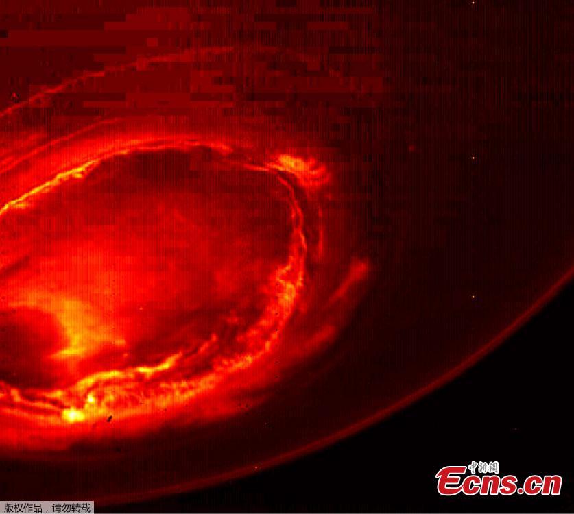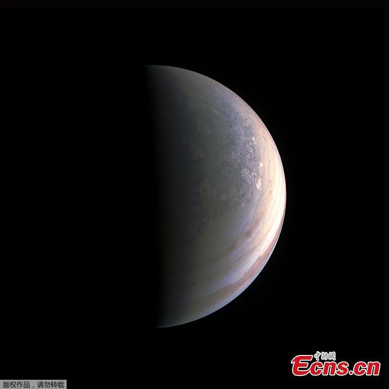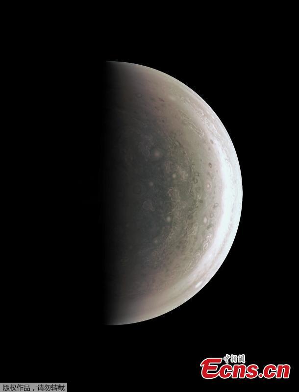 NASA's Juno spacecraft captures this view as it closes in on Jupiter's north pole, about two hours before closest approach on Aug. 27, 2016. NASA's Juno spacecraft has sent back the first-ever images of Jupiter’s north pole, taken during the spacecraft's first flyby of the planet with its instruments switched on. The images show storm systems and weather activity unlike anything previously seen on any of our solar system's gas-giant planets. (Photo/NASA)