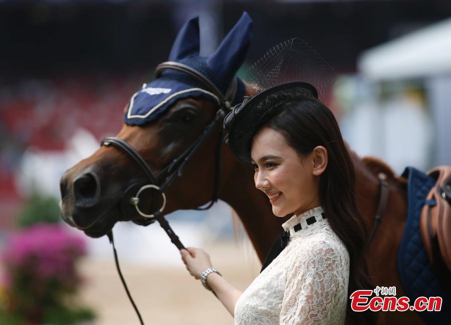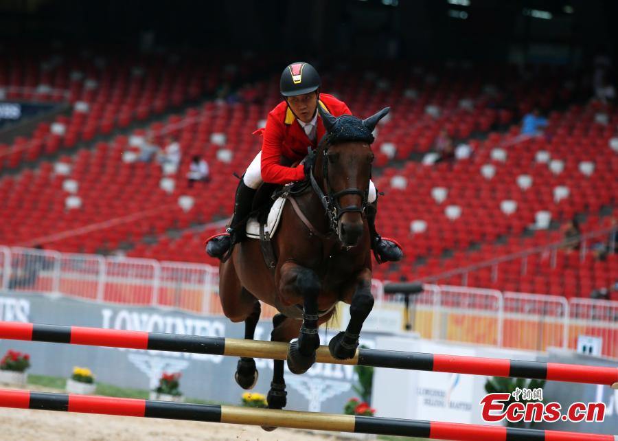 A rider competes in the Longines Equestrian Beijing Masters in Beijing, Sept. 4, 2016. The three-day competition was held at the Bird’s Nest, the National Stadium. (Photo: China News Service/Liu Guanguan)