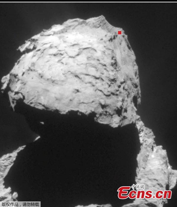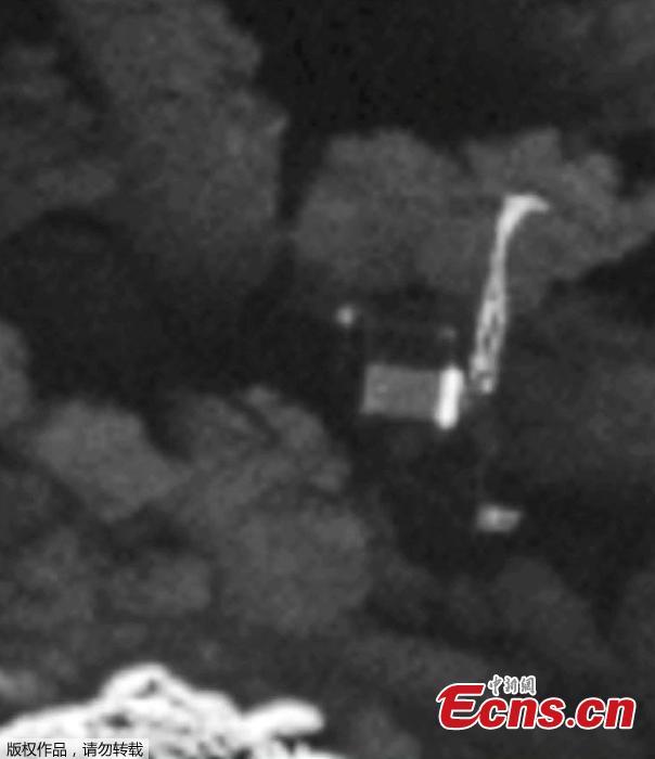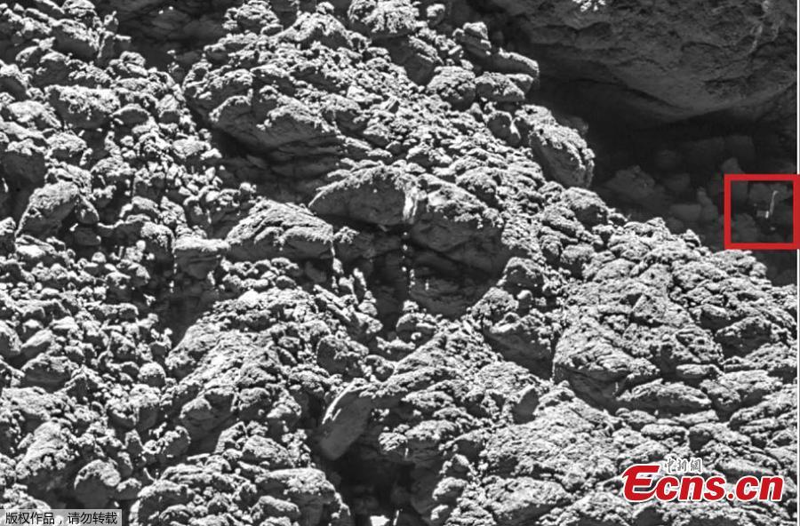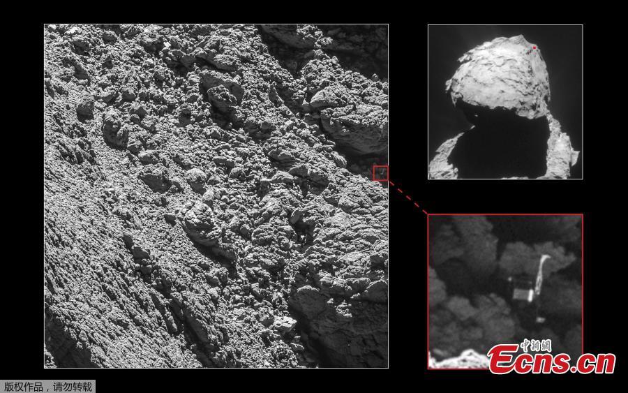 High-resolution cameras on Europe's Rosetta spacecraft have found space probe Philae, which successfully landed on a comet in a pinpoint operation only to lose power because its solar-driven batteries were in the shade. The European Space Agency (ESA) said on September 5, 2016 that images taken by the orbiter from a distance of 2.7 kilometers showed the lander's characteristic 1 meter-sized body and its legs wedged into a dark crack on Comet 67P.Philae went missing after completing a soft-landing on Comet 67P/Churyumov-Gerasimenko in November 2014.(Photo/Agencies)