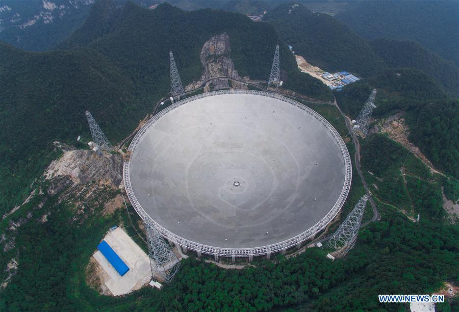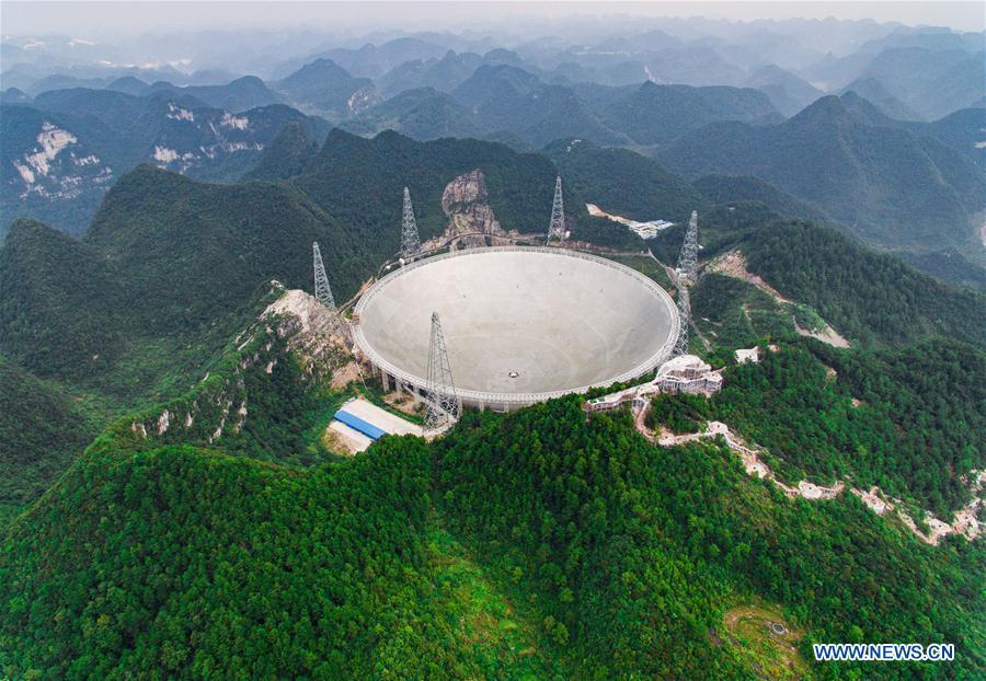 Photo taken on Sept. 7, 2016 shows the Five-hundred-meter Aperture Spherical Telescope (FAST) in Pingtang County, southwest China's Guizhou Province. The FAST, world's largest radio telescope, is expected to be put into operation at the end of September. (Xinhua/Liu Xu)