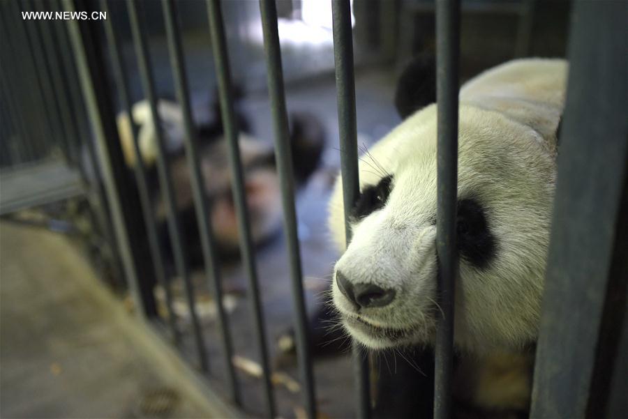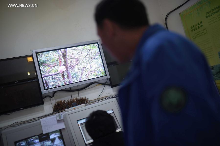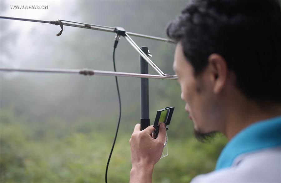 File photo taken on Jan. 27, 2016 shows staff members make health checkup for a giant panda cub during a wild training in Hetaoping Wild Training Base, southwest China's Sichuan Province. With the increasing number of giant pandas bred and kept in captivity, China started sending captive-bred pandas into the wild in 2006 in an effort to improve the genetic diversity and quality of the species. (Photo/Xinhua)