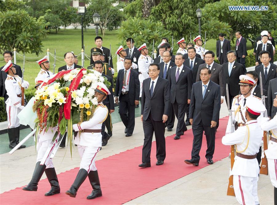 Chinese Premier Li Keqiang lays a wreath at Laos' anonymous martyr's monument in Vientiane, Laos, Sept. 8, 2016. (Xinhua/Wang Ye)