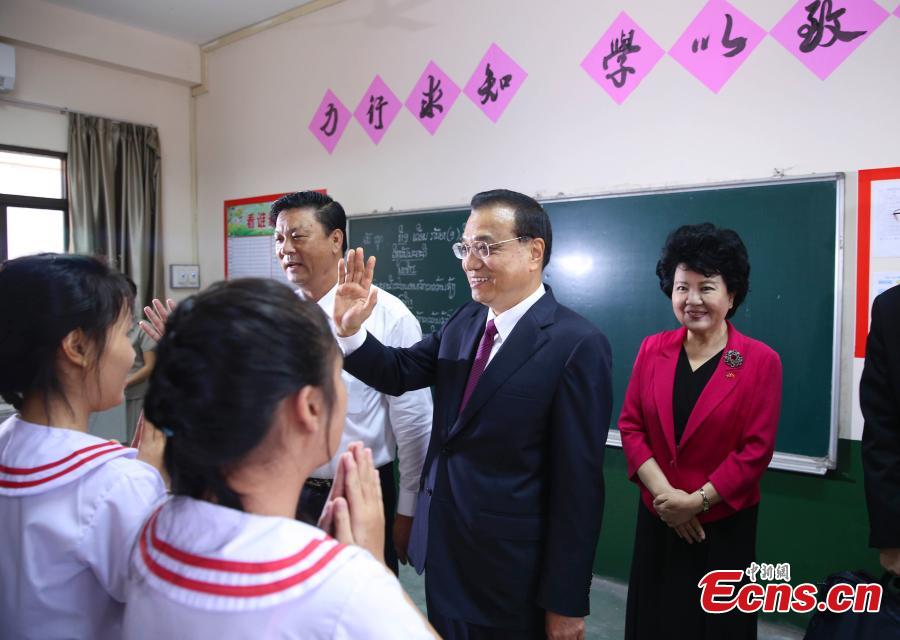 Premier Li Keqiang visits Chinese-language school in Laos (1/3)